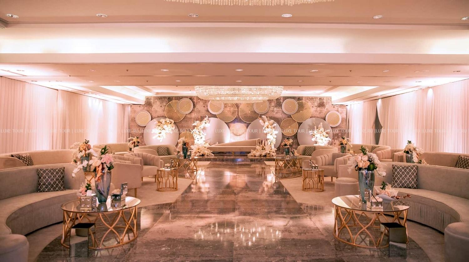 Для гостей – 5 залов для деловых и торжественных мероприятий вместимостью от 18 до 2000 человек, включая многофункциональный зал Kingdom Ballroom (3956 м2) с несколькими секциями, открытая терраса с садом вместимостью до 150 человек, бизнес-центр, бесплатный Wi-Fi, цветочный бутик, парковка, лимузин-сервис, аренда машин, услуги консьержа, услуги прачечной.