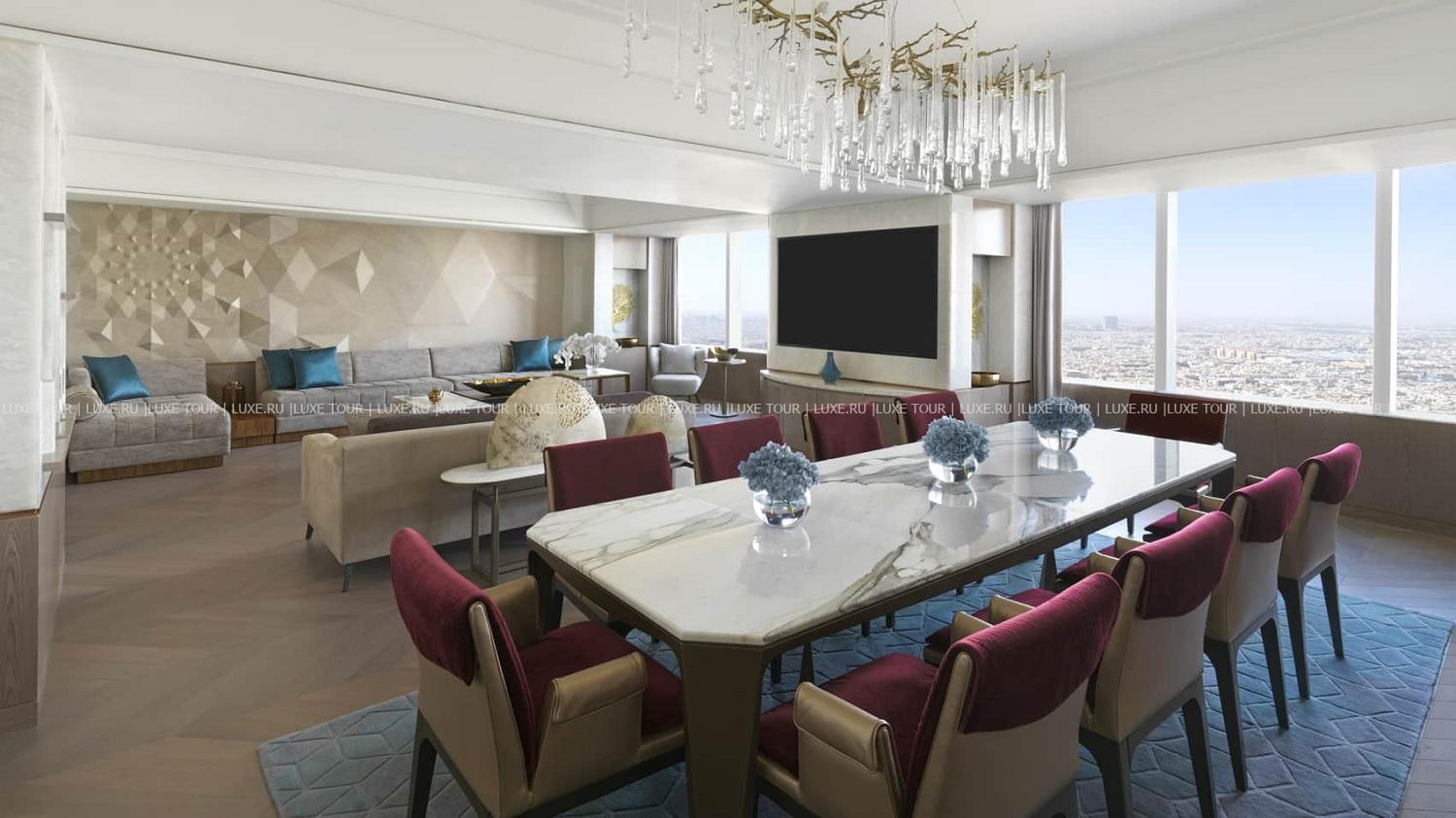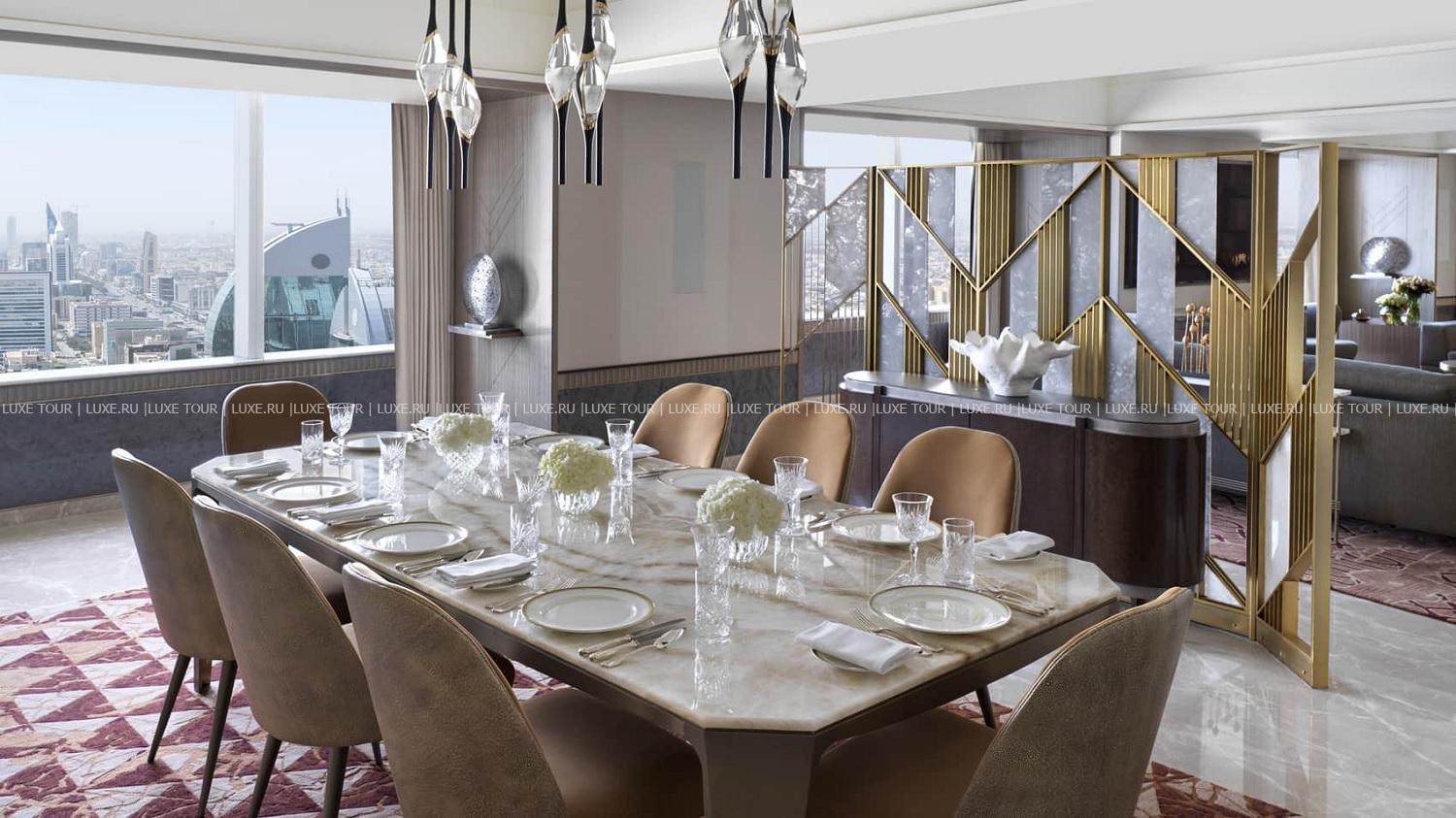 Four Seasons Hotel Riyadh находится в знаменитом 99-этажном небоскребе «Королевский центр», взмывающем в самом сердце Эр-Рияда. Помимо расположения в грандиозном торгово-развлекательном центре с бутиками ведущих мировых брендов, ресторанами, кинозалами и смотровой площадкой SkyBridge на высоте 300 метров, фешенебельный отель предлагает эксклюзивный сервис сети Four Seasons: просторные элегантные номера с фантастическим видом на город, изысканная кухня в ресторанах, Spa-центр с бассейном, хаммамом и разнообразным спа-меню, круглосуточная фитнес-студия, конгресс-центр с великолепными залами для мероприятий любого уровня и другие услуги класса «люкс». Four Seasons Hotel Riyadh – идеальный выбор для отдыха и знакомства со столицей Саудовской Аравии.