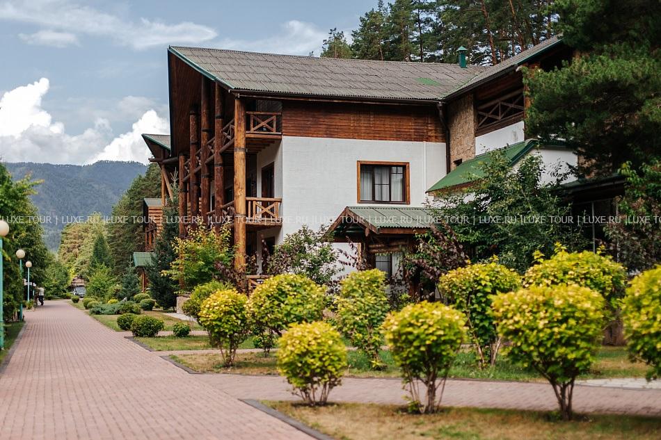 - Уютный ресторан Звенящий кедр, построенный из цельного кедрового бруса, предлагает традиционные алтайские блюда, приготовленные из экологически чистых местных продуктов и с использованием минеральной воды из собственного источника отеля. Летом насладиться вкусными блюдами можно на большой открытой террасе с чудесным видом на лес и горы.