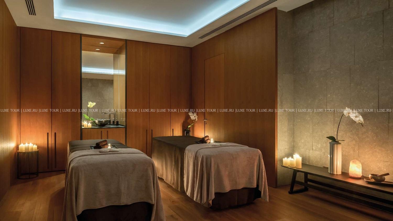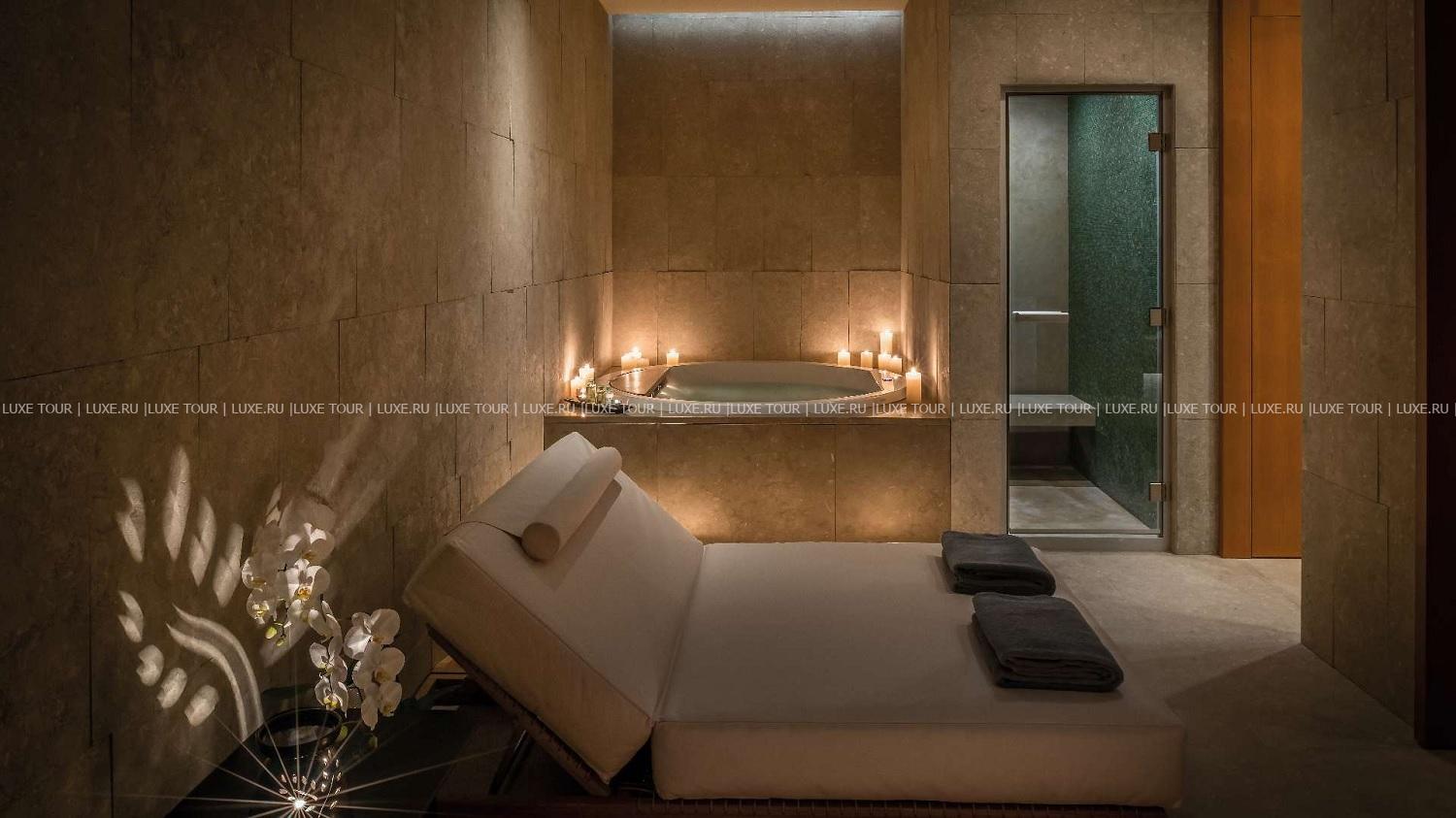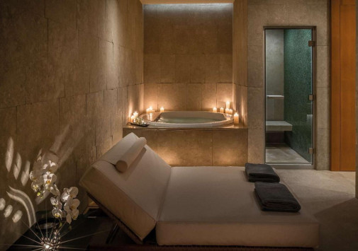 Отель располагает первоклассным центром Bulgari Spa площадью 1500 м2, на двух этажах которого находятся: крытый 25-метровый бассейн с подогревом, сауна, парная, студия маникюра, спа-бутик, зона отдыха с витаминным баром и 11 процедурных кабинетов. В центре предлагается разнообразие услуг по уходу за телом и лицом, включая спа-ритуалы на основе традиционной китайской медицины и процедуры с использованием косметических средств La Mer