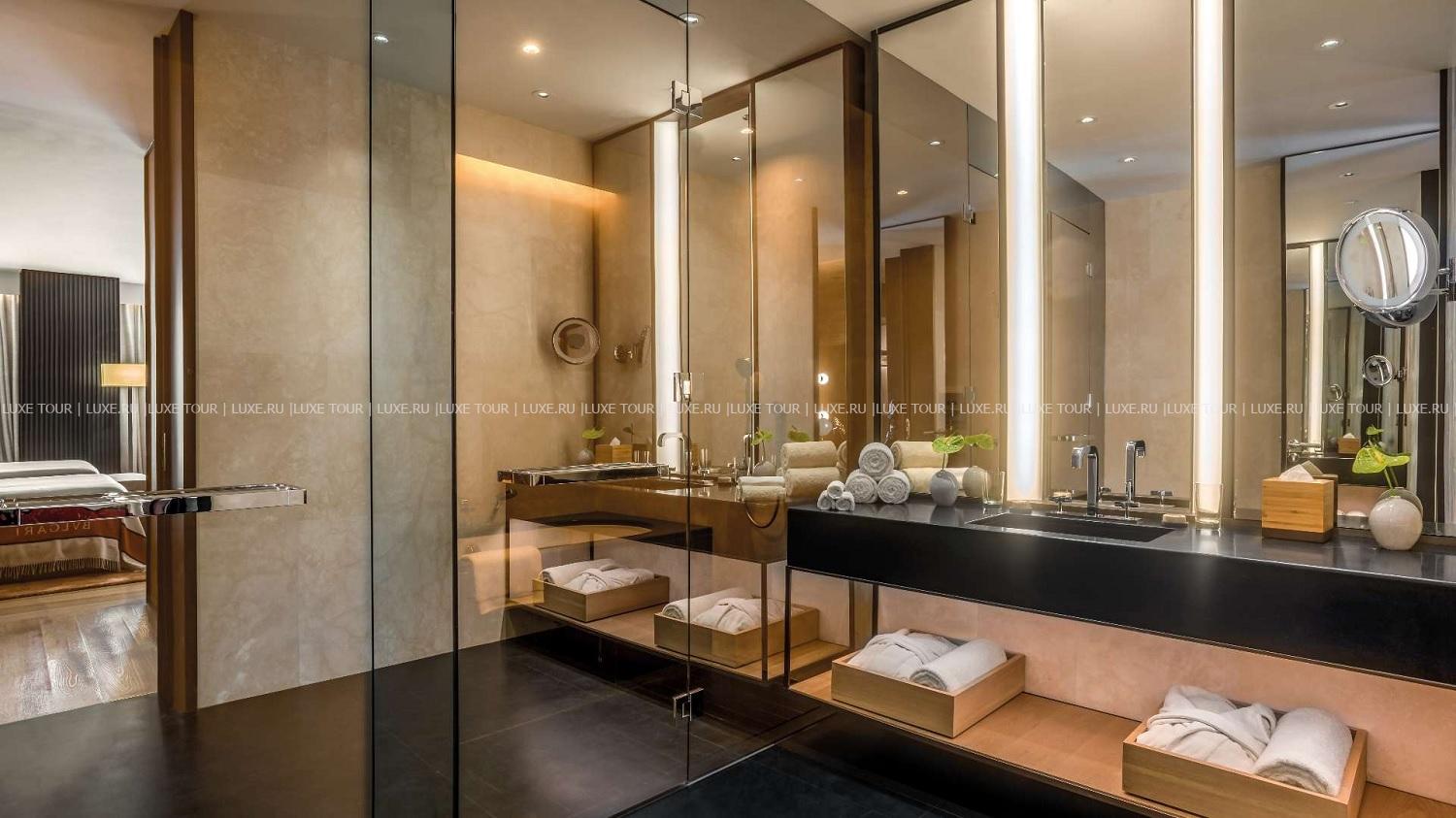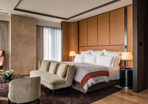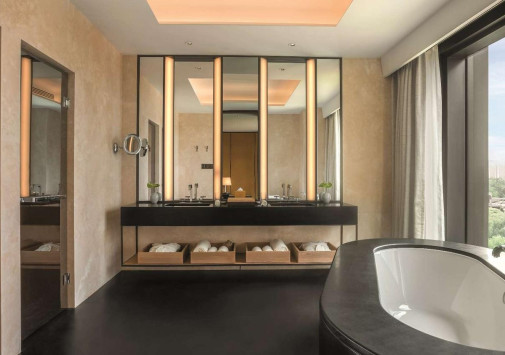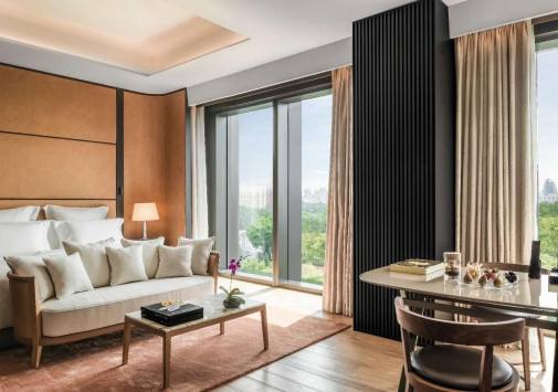 Современное здание Bulgari Hotel, Beijing, сверкающее зеркалами окон и окруженное итальянскими ландшафтными садами, возвышается на берегу реки Лянма, в центре посольского района Пекина. Фасад гармонирует с шикарными интерьерами, вдохновленными миланским отелем Bulgari и гламуром 1930-х годов, а спроектирован пекинский отель был как «городской курорт». Здесь есть все для комфортного отдыха – от элегантных номеров с панорамным видом на город и ресторана высокой кухни Il Ristorante – Niko Romito, удостоенном звезд Мишлен, до стильных баров и роскошного Spa-центра с бассейном. Bulgari Hotel, Beijing предлагает эстетику итальянской dolce vita в сердце китайской столицы.