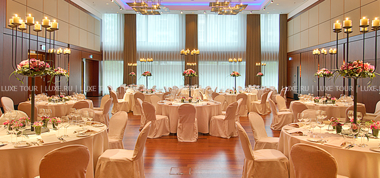 Для проведения деловых встреч и торжественных мероприятий отель располагает 4 залами для встреч и бальной залой общей площадью 878 кв.м.