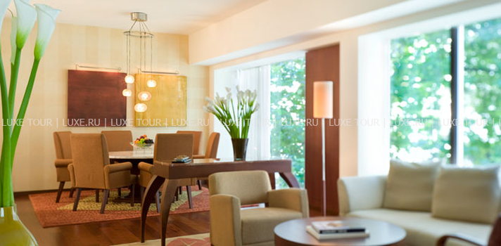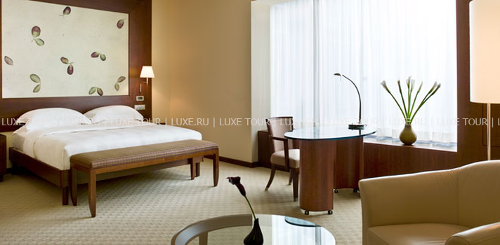 Недавно построенный отель органичным образом сочетает ультрасовременный архитектурный дизайн, элегантные полные свежести и творческого замысла интерьеры и новейшие технологии, сопровождающие пребывание гостей абсолютным уютом и комфортом. Обилие современных материалов: стекла, стали и бетона — выливается в оригинальный экстерьер здания, гармонирующего с открывающимися видами и словно снимающего какие-либо границы между внутренним и внешним пространством. Основным приемом здесь становятся панорамные, от пола до потолка, окна. По задумке дизайнеров, обилие света, живописные городские пейзажи и возвышающиеся вдали горы дополняют выполненные по современным стилистическим канонам интерьеры, привнося особенное настроение и создавая исключительную атмосферу. Теплые тона тканей, гармоничное сочетание паркетных полов из вишни и кожаной меблировки, ковры, небольшие, но дополняющие шарма предметы декора: гравюры, оригинальные светильники, керамика и цветочные композиции — каждая деталь здесь продумана и призвана сыграть свою существенную роль в ансамбле изысканности и красоты, позиционируемой дизайном каждого номера.