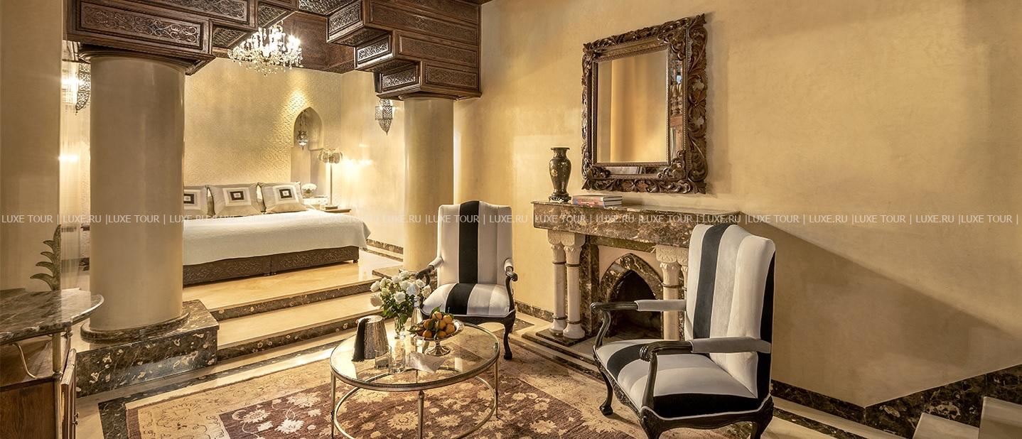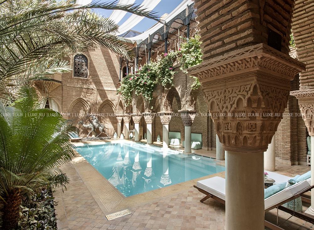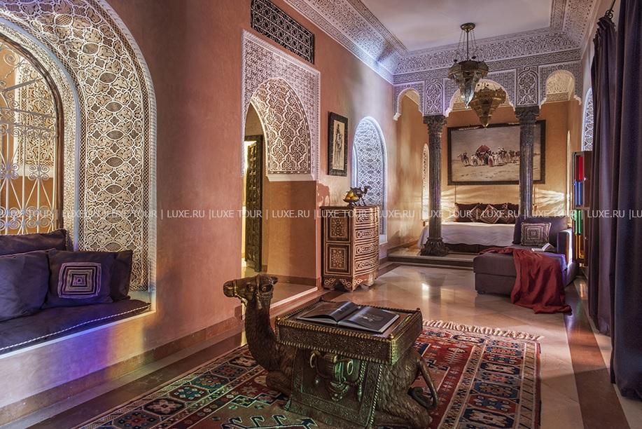 La Sultana Marrakech расположен в центре Марракеша, рядом с мавзолеем Саадитов, королевским дворцом Бахия и легендарной Мединой, внесенной в список Всемирного наследия ЮНЕСКО. Впрочем, и здание отеля. насчитывающее 10 столетий истории, является одной из городских достопримечательностей, а внутреннее убранство риады впечатляет роскошью в традициях марокканских дворцов: тончайшая резьба по дереву и камню, ажурные мозаики, антикварные произведения искусства, сверкание мрамора, люстр и зеркал, живописные дворики с пышной растительностью и журчащими фонтанами, террасы на крыше с потрясающим видом на Марракеш и Атласские горы. Интерьер каждого из номеров неповторим и восхищает своим великолепием, изысканная кухня рассчитана на гурманов, бассейн манит лазурной гладью, а после увлекательных экскурсий гости отеля могут расслабиться в хаммаме или массажном кабинете Spa-центра. La Sultana Marrakech – скрытая жемчужина в самом сердце древнего города.