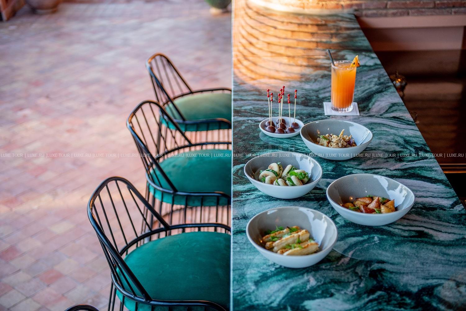 • В баре Odette на террасе на крыше, откуда открывается панорамный вид на Медину, подают закуски «мезе», классические и авторские коктейли.