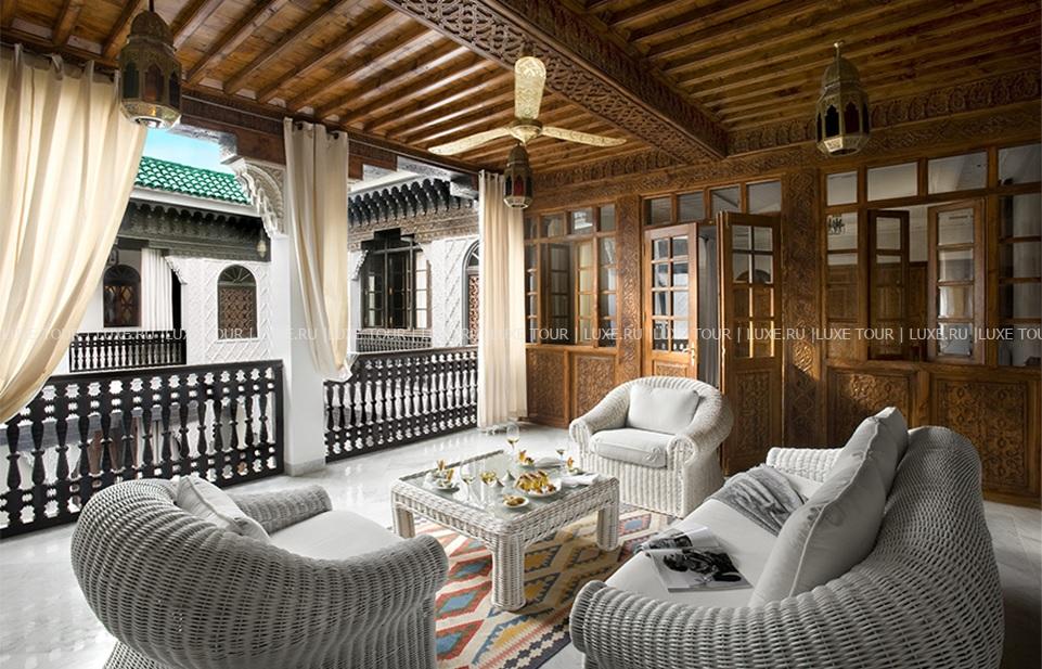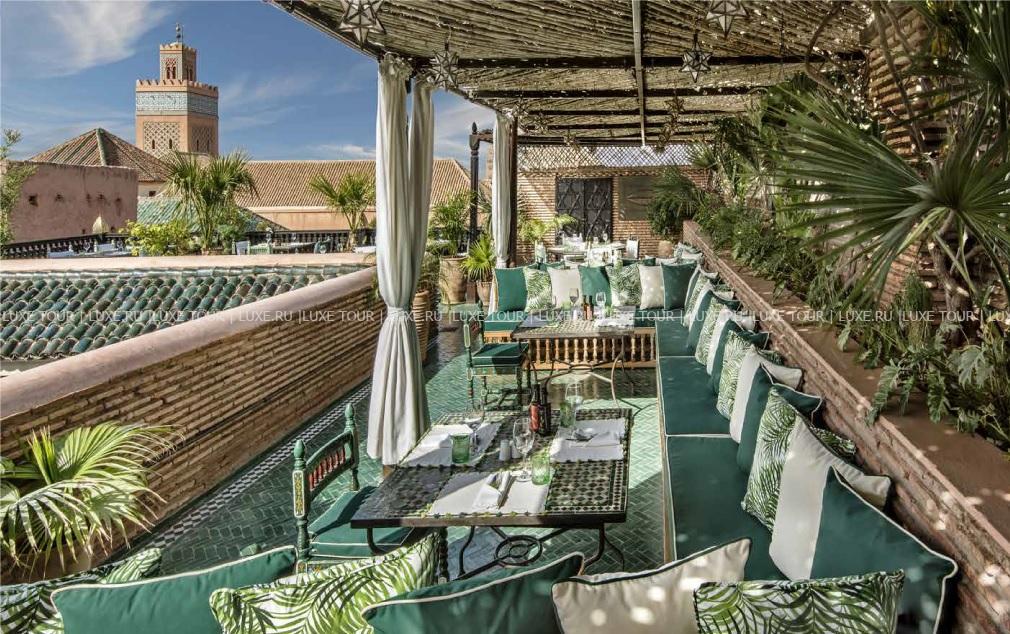 • Ресторан La Table du Souk, расположенный на живописной террасе на крыше, предлагает насладиться аутентичными марокканскими блюдами, любуясь потрясающим видом на мечеть Мулай Эль-Язид и исторический центр города.