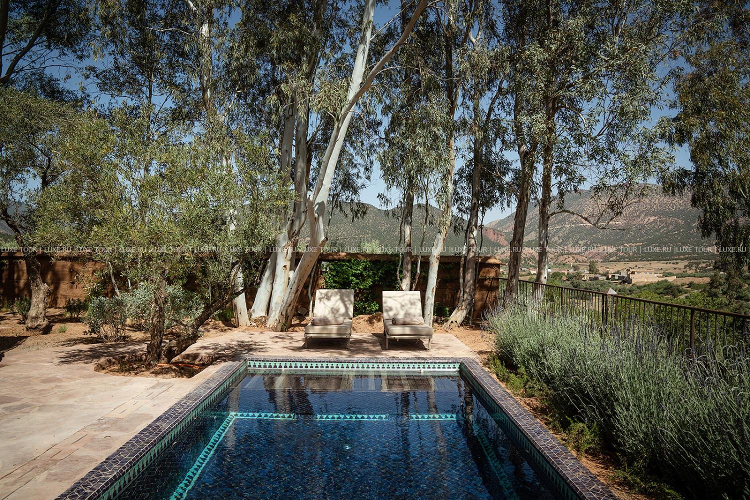 В предгорьях Атласа, в окружении оливковых рощ находится Olinto Atlas Mountain Retreat, открытый итальянским аристократом Фабрицио Русполи ди Поджо Суаса, который отразил свою любовь к Марокко в каждой детали отеля. Здесь всего 9 номеров-коттеджей, оригинальная архитектура и элегантный интерьер которых вдохновлены аутентичными марокканскими и берберскими традициями, а с террас открывается чарующий вид на величественные горные вершины и благоухающие сады с зеркальным бассейном, журчащими фонтанами, укромными каменными дорожками и увитыми виноградом беседками. Также гости могут насладиться вкусными местными блюдами, приготовленными из свежих фермерских продуктов, отправиться на прогулку по живописным окрестностям, познакомиться с древней культурой и жизнью бербер, а после – расслабиться в хаммаме и массажном кабинете отеля. Olinto Atlas Mountain Retreat предлагает эксклюзивный отдых в идиллическом горном уголке Марокко.