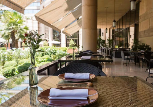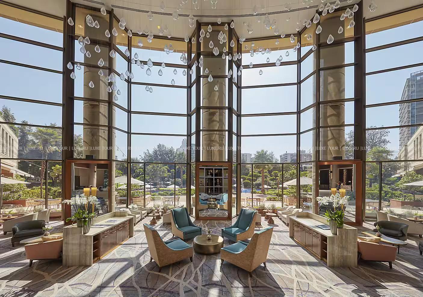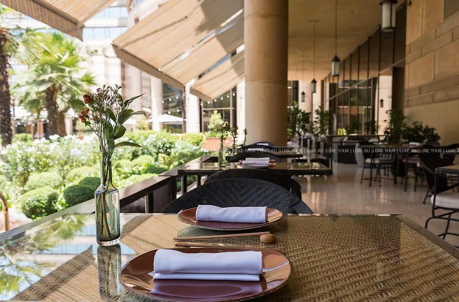 - В элегантном лобби-лаундже Atrium со стеклянными стенами и видом на сад и бассейн в течение дня можно перекусить, отдохнуть за чашечкой кофе или коктейлем, а летом в баре работает просторная терраса, окруженная садом.