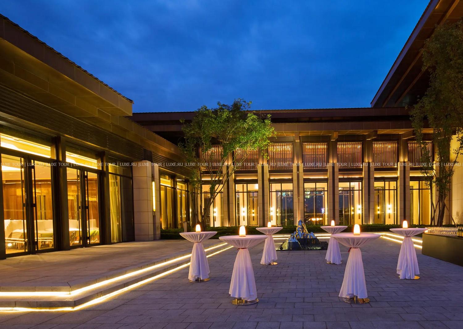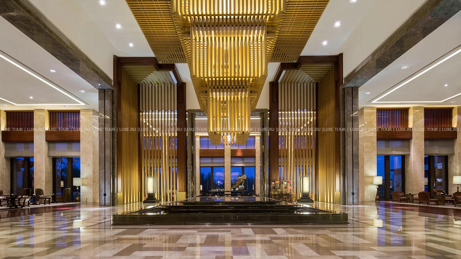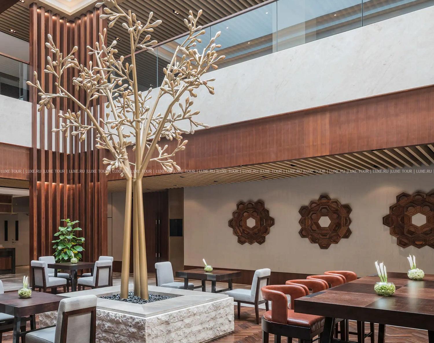 - Элегантный интерьер лобби-лаунджа, расположенного в атриуме с видом на озеро, вдохновлен тематикой Великого Шелкового пути, а меню включает широкий выбор легких закусок и напитков.