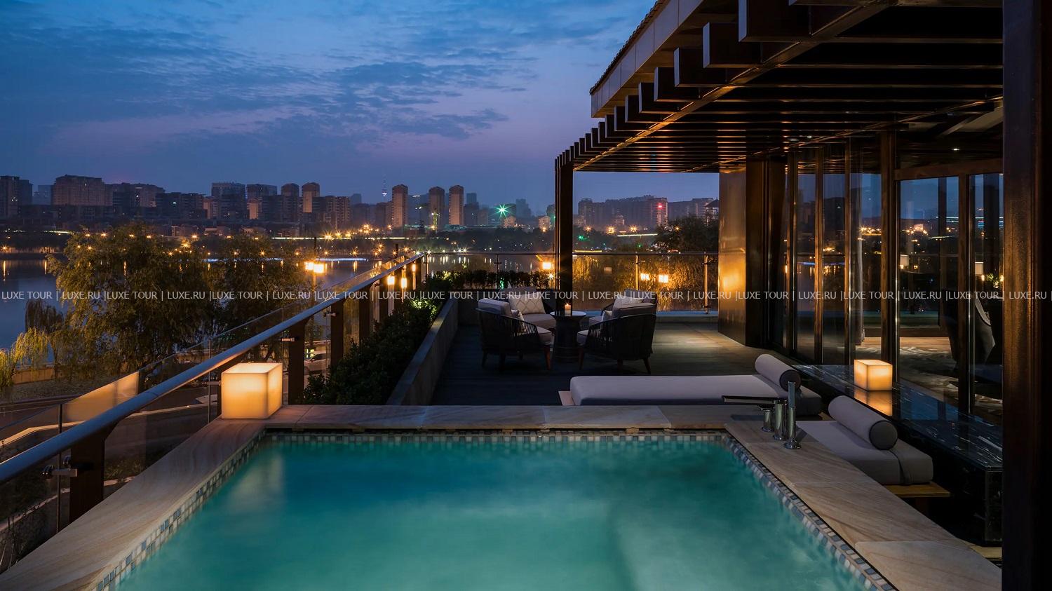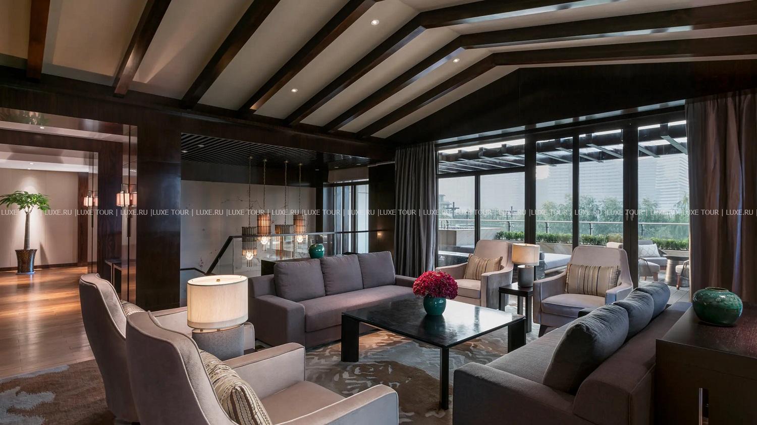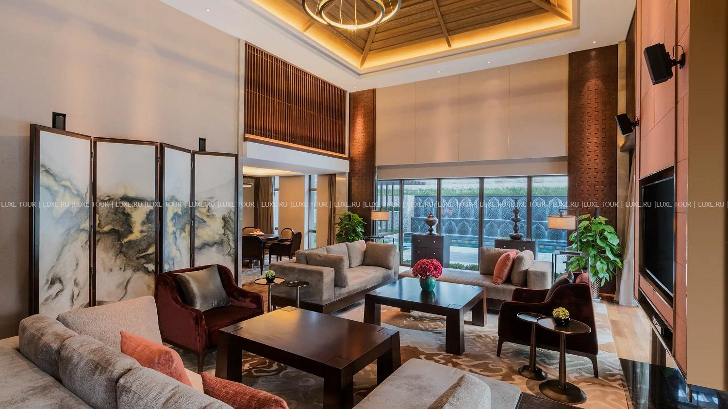 - Элегантный интерьер лобби-лаунджа, расположенного в атриуме с видом на озеро, вдохновлен тематикой Великого Шелкового пути, а меню включает широкий выбор легких закусок и напитков.