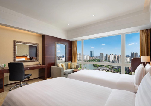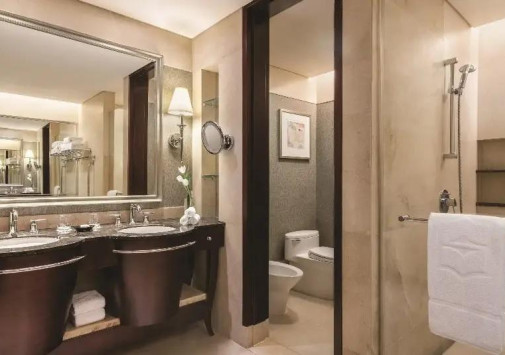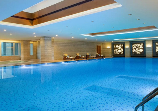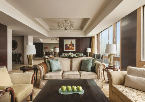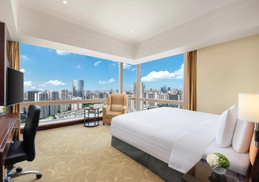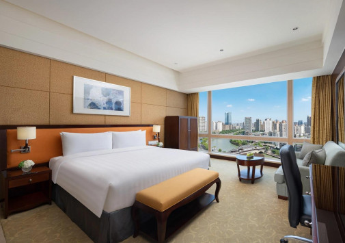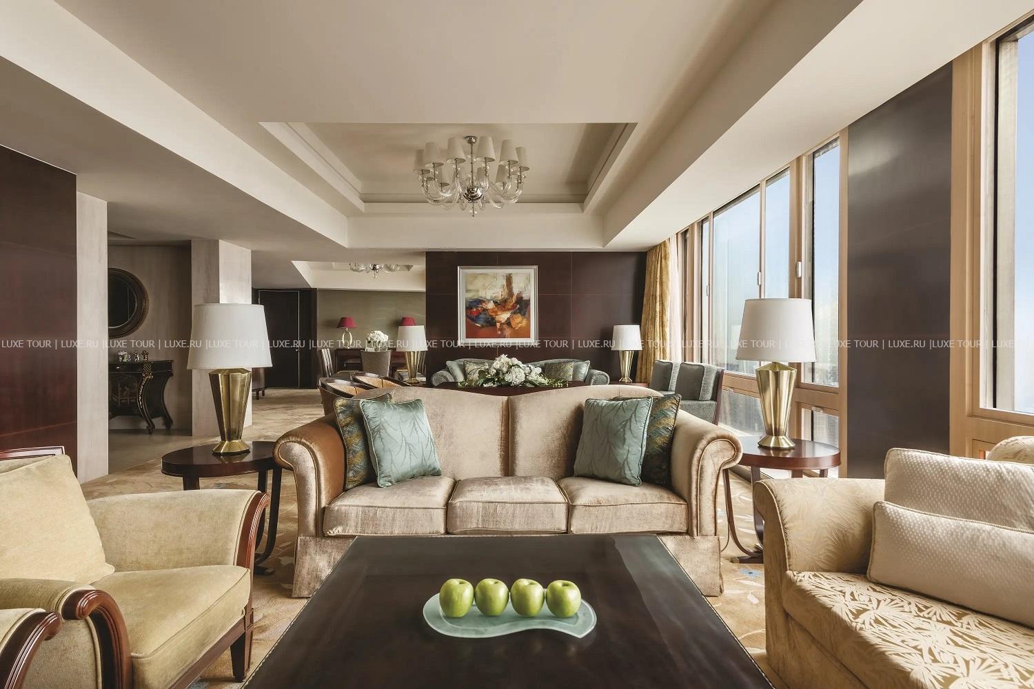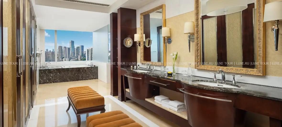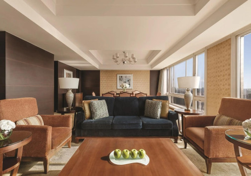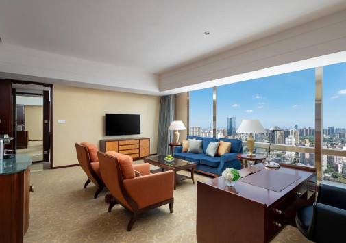 - В элегантном лобби-лаундже с панорамными 8-метровыми окнами можно выпить чашечку ароматного чая или кофе с изысканными десертами и полюбоваться великолепным видом на реку Цзинь и город.