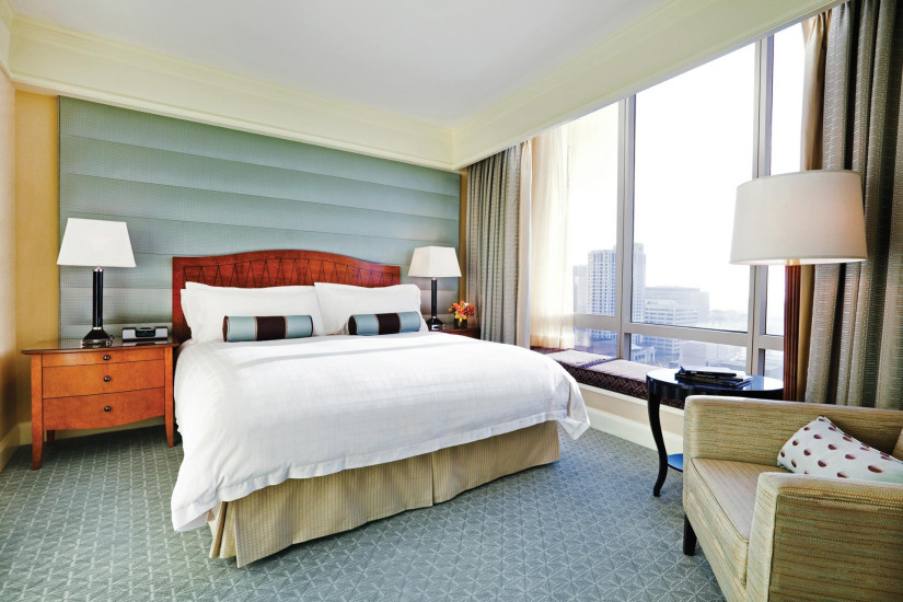 - 45 м2. Расположен с 6 по 17 этажи, состоит из спальни с кроватью king-size и рабочей зоной, ванной комнаты с ванной и душем, гардеробной, вид на Маркет-стрит или парк Йерба-Буэна (в номерах на нижних этажах), либо на город, залив Сан-Франциско или парк Йерба-Буэна (в номерах на верхних этажах). Размещение – 3 взрослых или 2 взрослых + 1 ребенок.