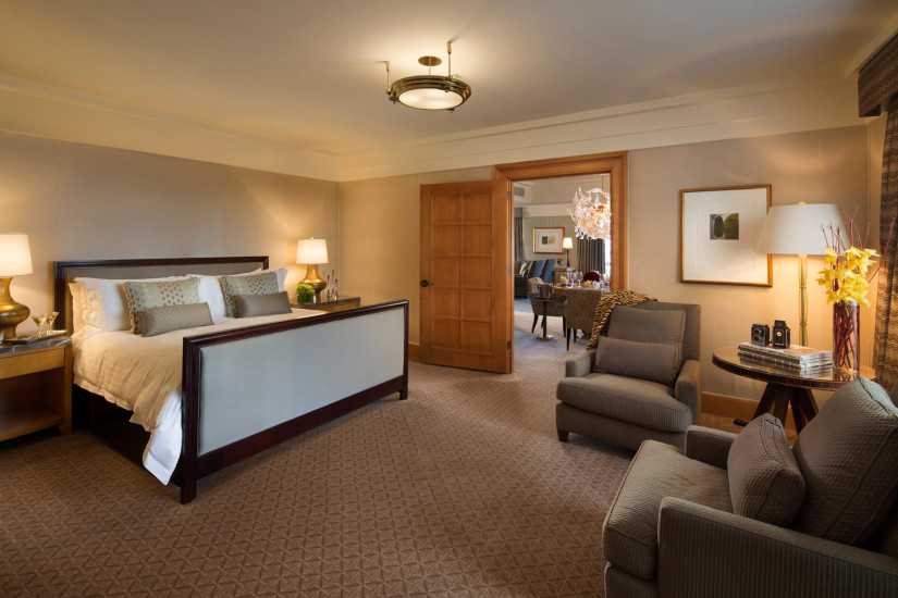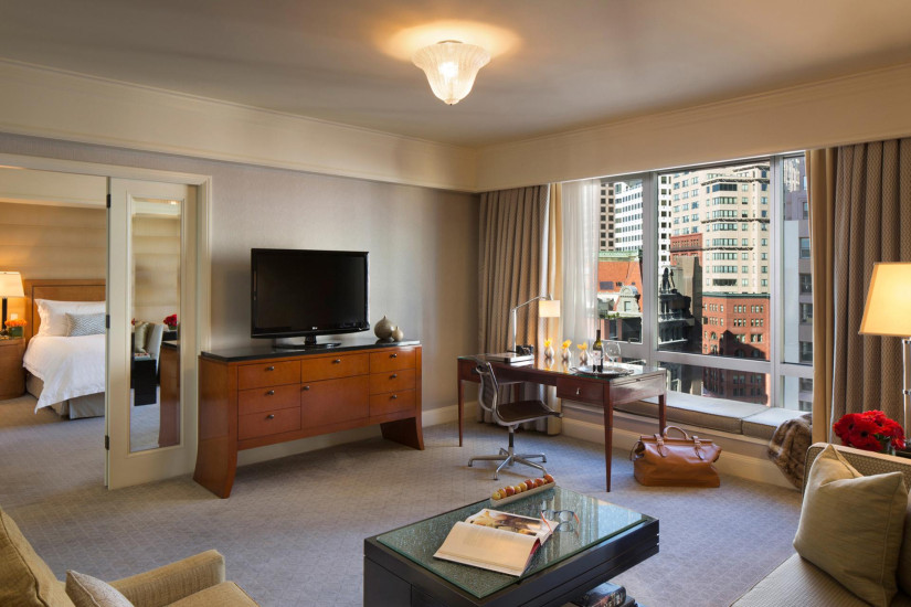 - 93 м2. Расположен в угловой северо-восточной части здания, с 12 по 15 этажи, состоит из спальни с кроватью king-size, гостиной с зоной отдыха, диваном и рабочей зоной, ванной комнаты с ванной и душем, гостевой туалетной комнаты, гардеробной, панорамный вид на город и парк Йерба-Буэна. Размещение – 3 взрослых или 2 взрослых + 2 ребенка.