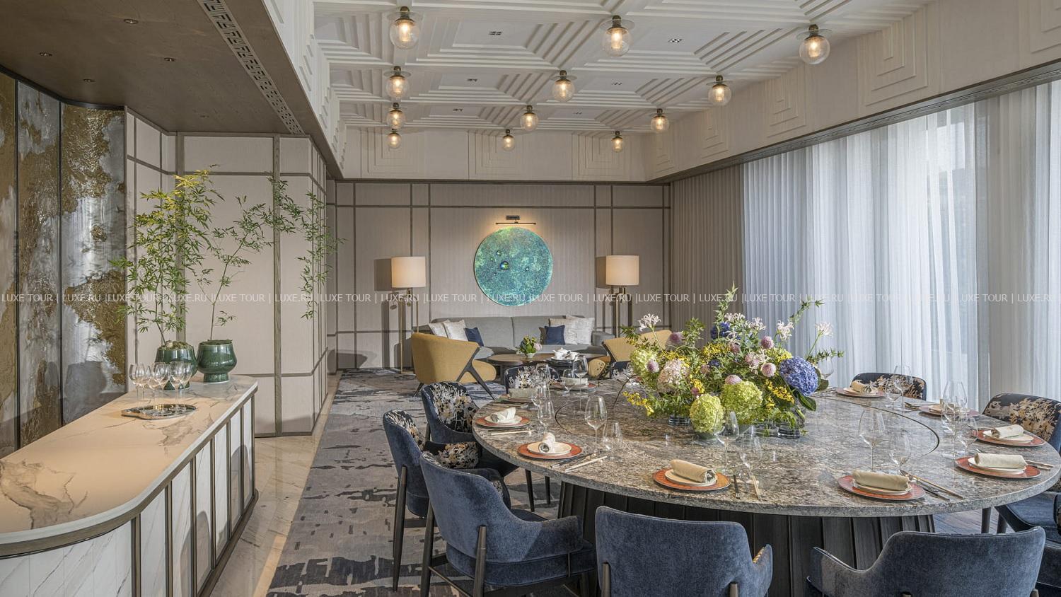 - Гастрономический ресторан Song с элегантным интерьером и пятью приватными залами представляет деликатесы региона Нинбо с акцентом на морепродукты.