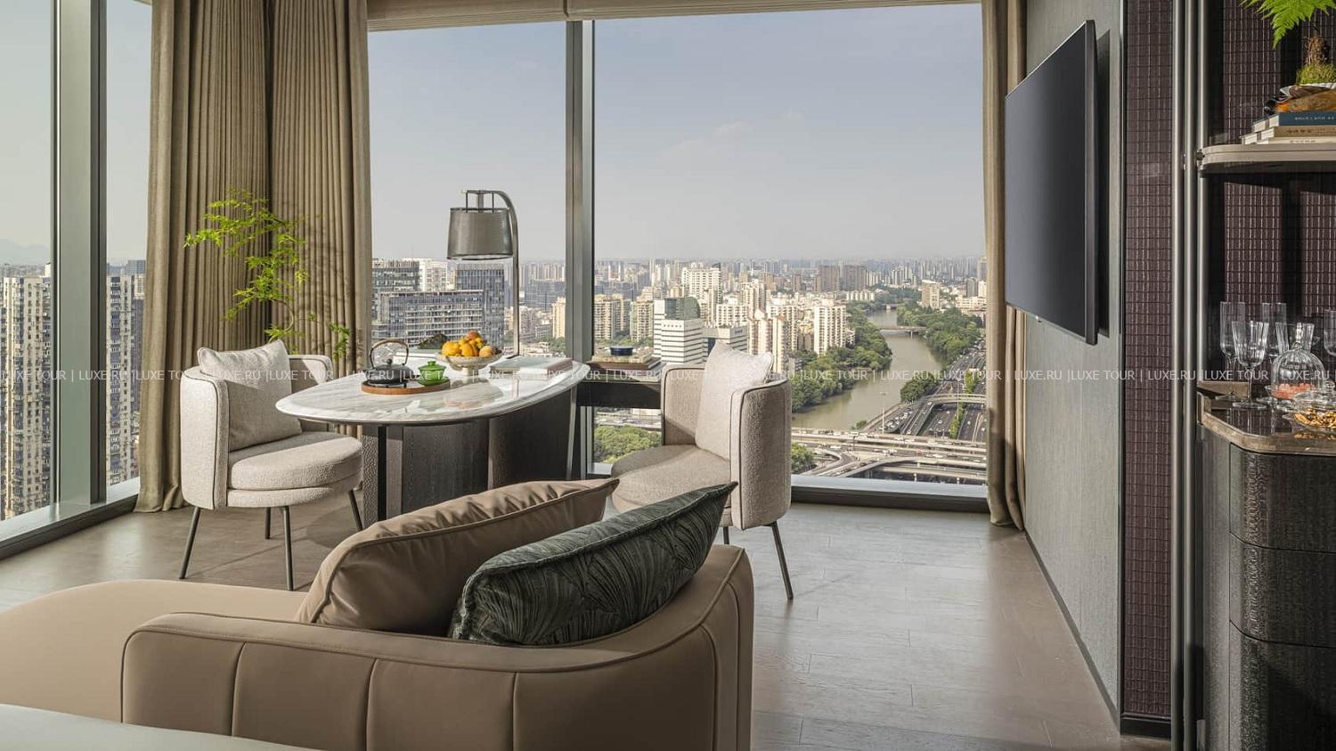 Four Seasons Hotel Hangzhou at Hangzhou Centre расположен в небоскребе, возвышающемся в торгово-деловом комплексе Ханчжоу, рядом с многочисленными торговыми центрами, ресторанами и всего в нескольких шагах от Великого канала – одного из древнейших действующих гидротехнических сооружений мира, включенного в список объектов Всемирного наследия ЮНЕСКО. Потрясающий вид на канал, город и легендарное Западное озеро открывается из панорамных окон стильных комфортабельных номеров отеля, из бара Stars на крыше и из бассейна в Spa-центре, изысканные рестораны приглашают гостей в гастрономическое путешествие, а многофункциональные залы конференц-центра рассчитаны на проведение мероприятий любого уровня. Four Seasons Hotel Hangzhou at Hangzhou Centre – прекрасный выбор для отдыха, деловых и туристических поездок в Ханчжоу.