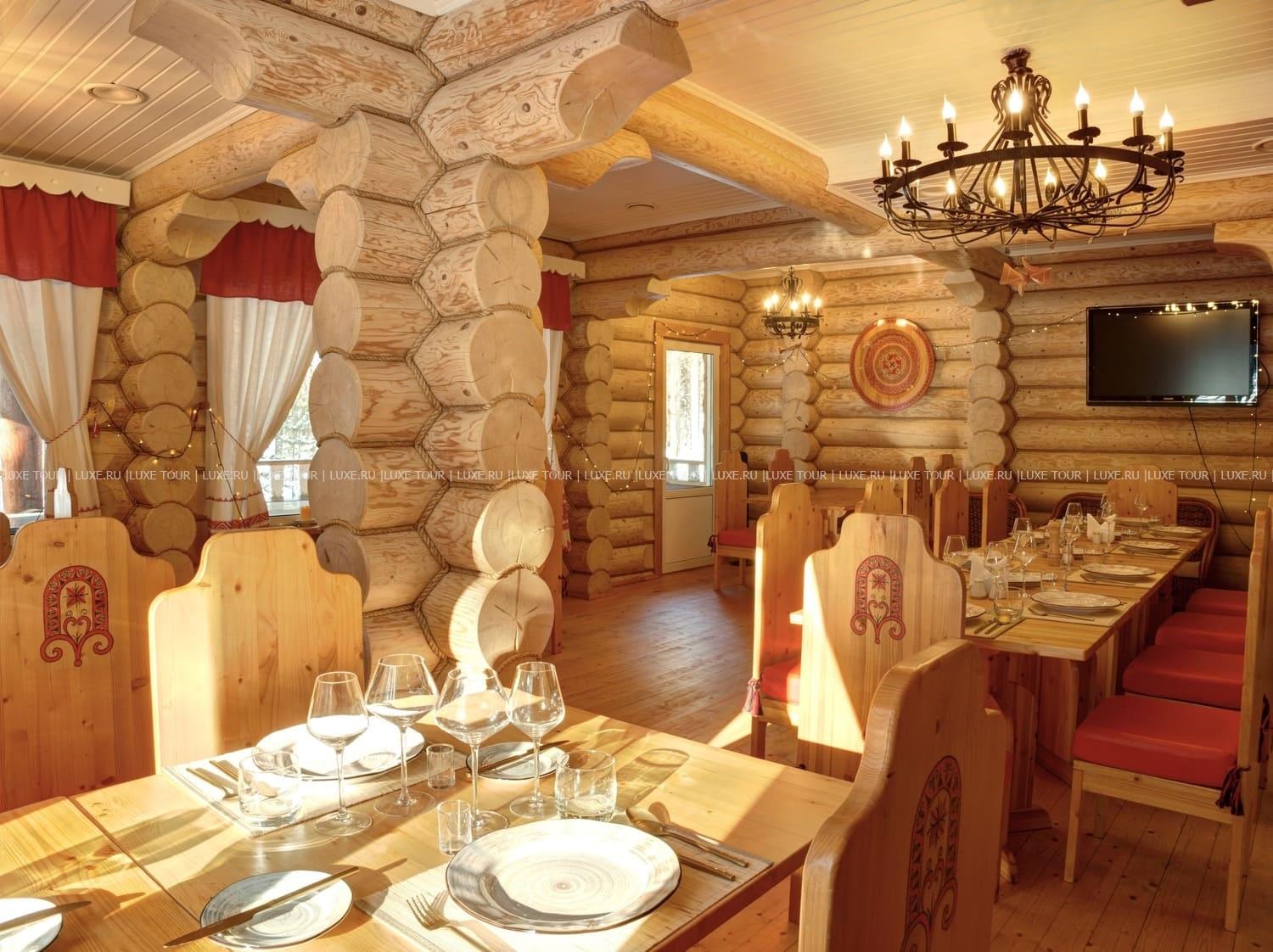 - Интерьер ресторана поморской кухни воссоздает атмосферу русской трапезной и украшен декоративными произведениями искусства архангельских мастеров, а меню впечатляет разнообразием превосходных блюд, приготовленных по аутентичным рецептам Поморья из отборных местных продуктов, включая рыбу, морепродукты, ягоды и грибы.