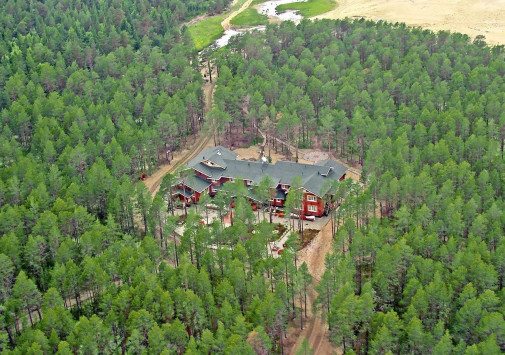 Лодж расположен в сосновом бору на берегах реки Золотицы и Белого моря, на границе национального парка «Онежское Поморье», в 40 км от Соловецкого архипелага и в 200 км от Архангельска.