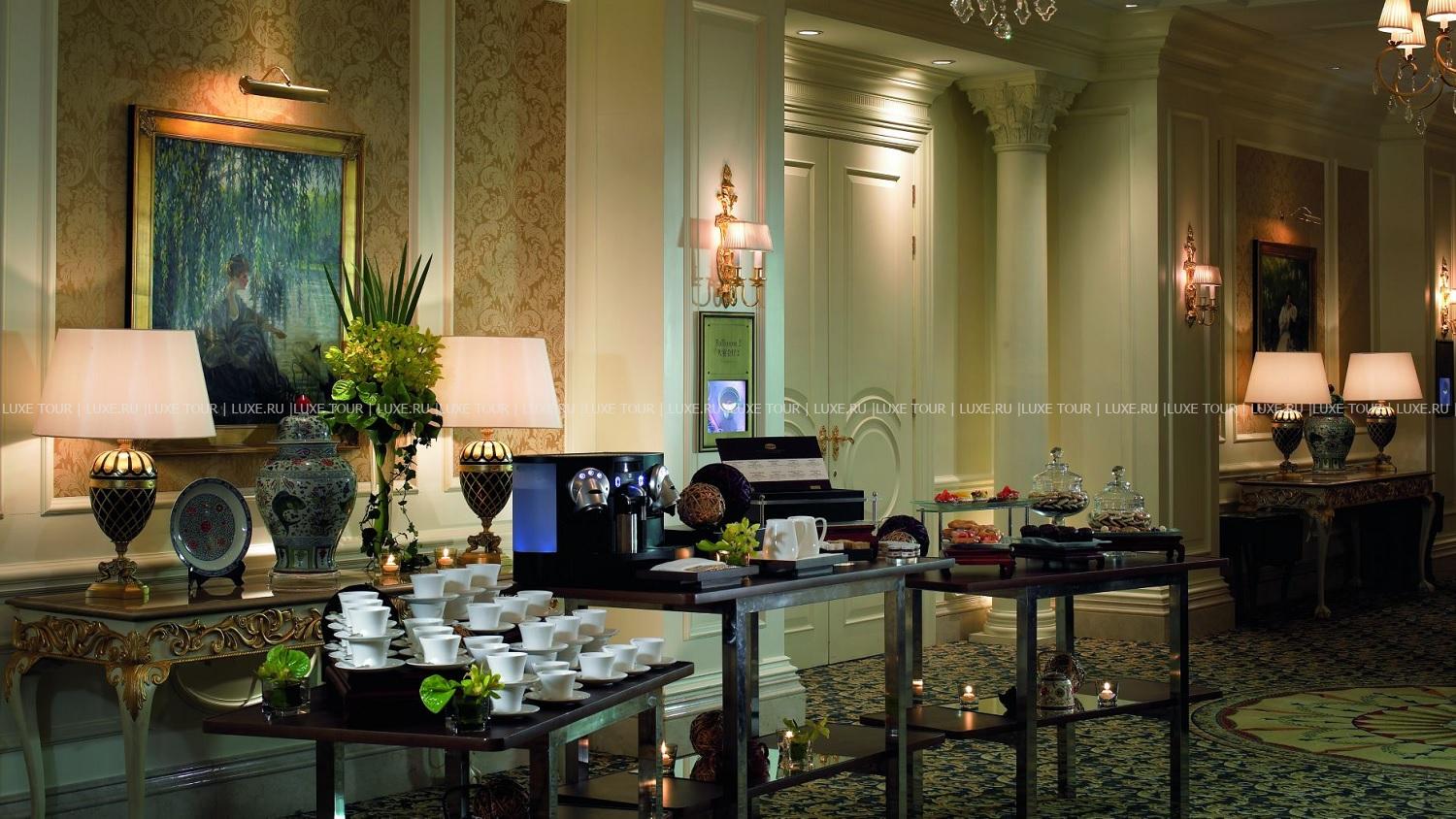 • В элегантном лобби-лаундже в английском стиле подают традиционный послеобеденный чай с изысканными десертами, а также шампанское и коктейли.