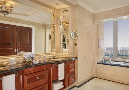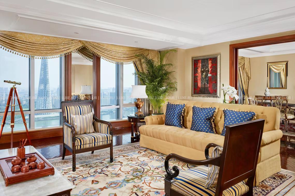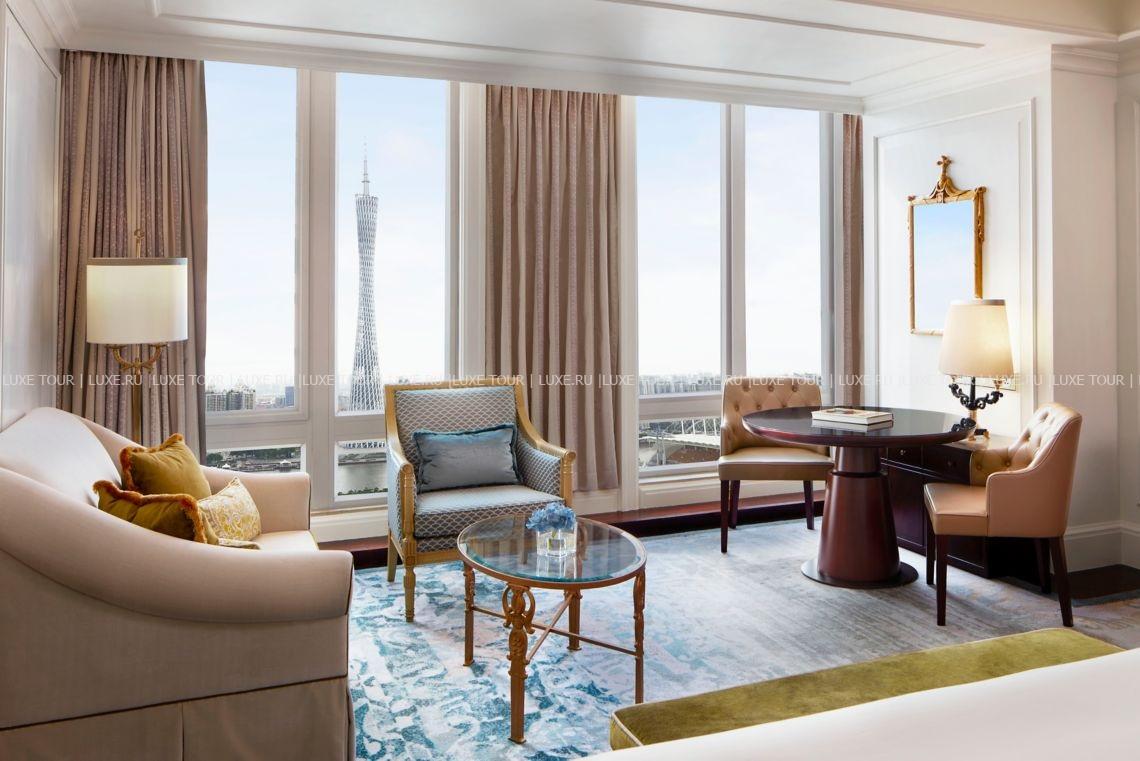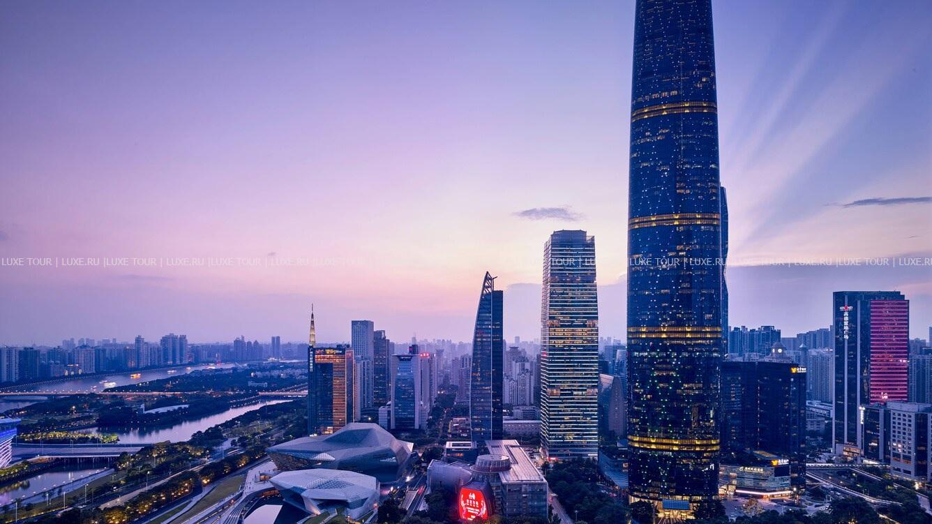Башня The Ritz-Carlton, Guangzhou идеально вписана в ультрасовременный архитектурный ландшафт делового района «Новый город Чжуцзян» или «Новый город Жемчужный реки», вид на которую, как и на футуристические пейзажи Гуанчжоу открывается из роскошных номеров отеля. Помимо этого, отель предлагает гостям гастрономическое разнообразие в элегантных ресторанах, включая ресторан кантонской кухни Lai Heen, отмеченный звездой Мишлен, напитки премиум-класса в стильном баре Churchill и более 100 сортов чая в лаундже Pearl, Spa-центр площадью более 3000 м2 – с открытым подогреваемым бассейном в стиле рококо, и конгресс-центр с 13 залами, вмещающими до 1500 человек. The Ritz-Carlton, Guangzhou сочетает эксклюзивный сервис и богатое культурно-историческое наследие Гуанчжоу.