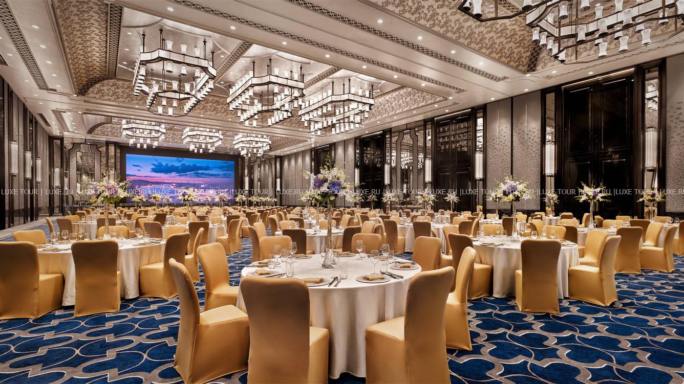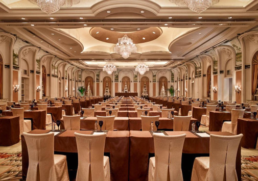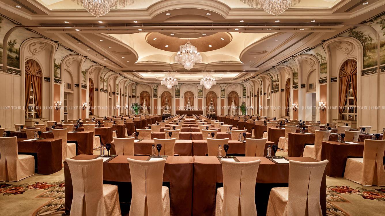 Для гостей – 13 залов для деловых и торжественных мероприятий общей площадью 2967 м2, включая роскошный Grand Ballroom в стиле рококо площадью 1210 м2 и вместимостью до 1500 человек, бизнес-центр, бесплатный Wi-Fi, сувенирный бутик, парковка, станция зарядки для электромобилей, лимузин-сервис, услуги консьержа, услуги прачечной.