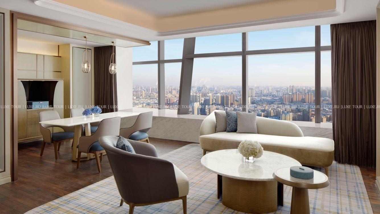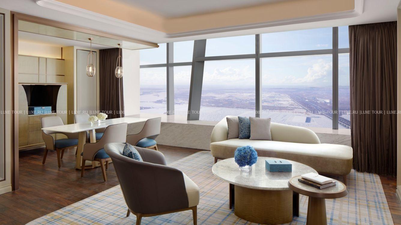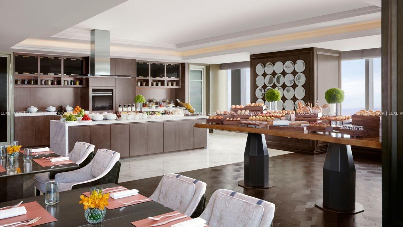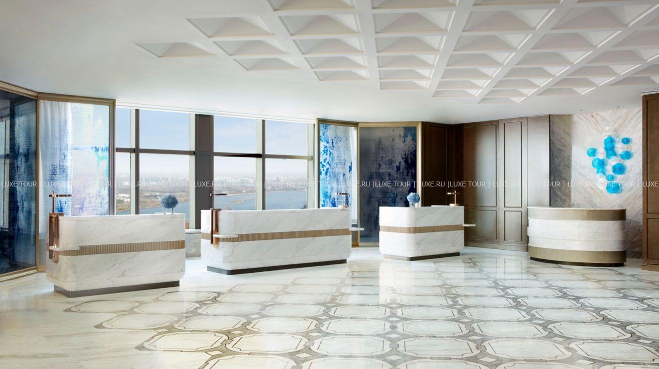 Для гостей – 14 залов для деловых и торжественных мероприятий общей площадью 3297 м2, включая роскошный Grand Ballroom площадью 1544 м2 и вместимостью до 2300 человек, и Sky Gallery на 57 этаже с потрясающим панорамным видом на город, бизнес-центр, Wi-Fi, парковка, лимузин-сервис, услуги консьержа, услуги прачечной.
