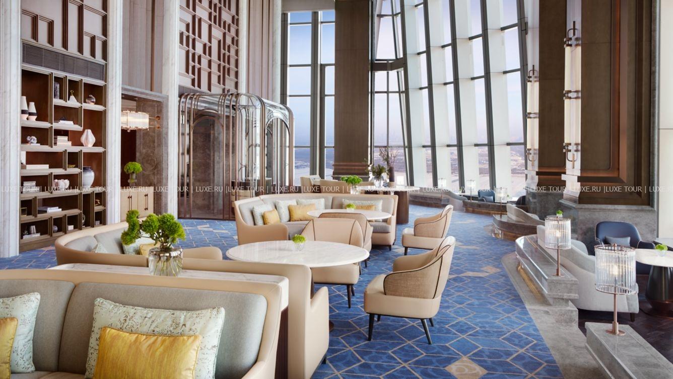 - Стильный лобби-лаундж с панорамными, во всю стену окнами и потрясающим видом на город и реку, предлагает широкий выбор напитков, послеобеденный чай с десертами и живую фортепианную музыку.