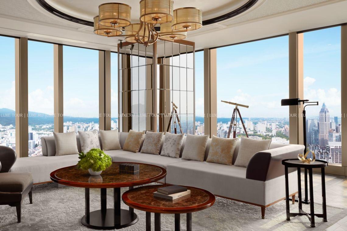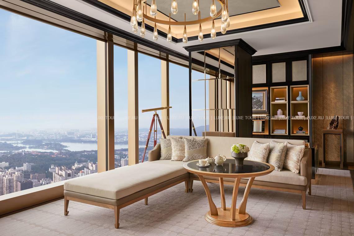 The Ritz-Carlton, Nanjing находится в сверкающем стеклом небоскребе, взмывающем на 62 этажа в центральном деловом районе Нанкина. Фантастический вид на столицу 10 династий, озеро Сюаньу, реку Янцзы и Пурпурную гору открывается из панорамных окон стильных номеров, включая их ванные комнаты, из ресторанов, впечатляющих гастрономическими изысками разных регионов Китая и деликатесами Прованса, с террасы шикарного бара на 62 этаже, из банкетных и конференц-залов, из бассейна, фитнес-зала и Spa-центра, предлагающего эксклюзивные процедуры. The Ritz-Carlton, Nanjing сочетает сервис класса «люкс» и богатейшее наследие древней китайской столицы.