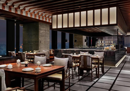 - Стильный гастрономический ресторан Pin Ning Fu на 39 этаже, откуда открывается потрясающий вид на озеро Сюаньу и Пурпурную гору, специализируется на деликатесах нанкинской кухни, берущей начало из знаменитой кулинарной школы Хуайян.