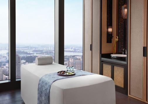 На 40 этаже отеля находится первоклассный Spa-центр, в котором имеются крытый бассейн, гидромассажная ванна, парная, сауна, зона отдыха и 8 процедурных кабинетов, включая 3 спа-сьюта для пар. В центре предложен широкий спектр услуг по уходу за телом и лицом, включая эксклюзивные процедуры с использованием цветов лотоса и богатых минералами речных камней, а также инновационной косметики La Mer.