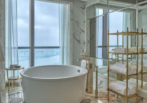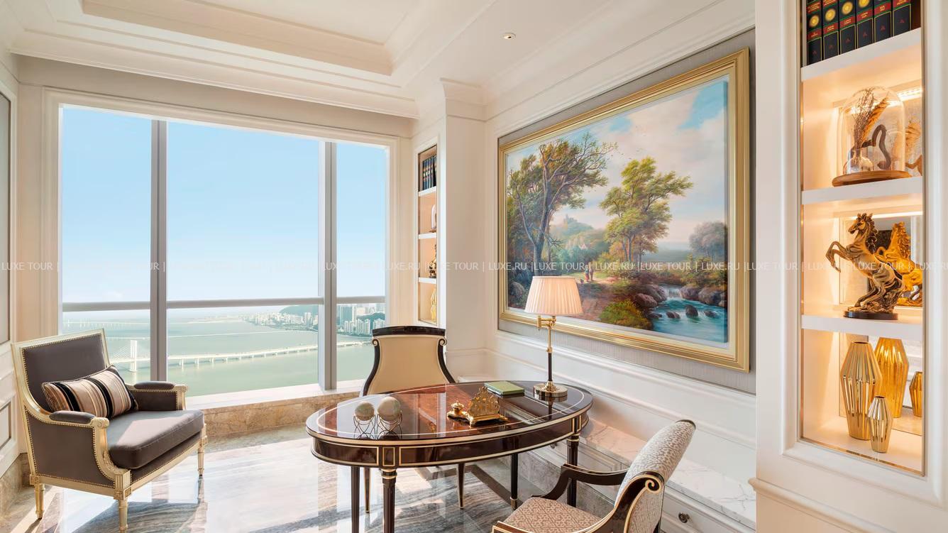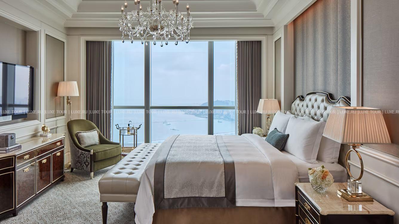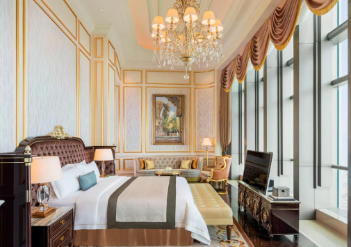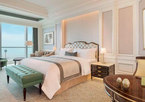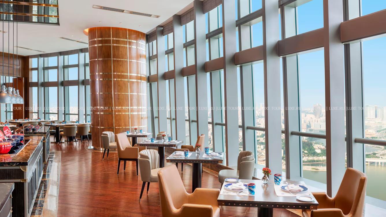 The St. Regis Zhuhai занимает 31 верхний этаж Чжухайской башни – сверхвысокого небоскреба, взмывающего над городом на 72 этажа и 329 метров. Головокружительным видом на Чжухай, Макао, дельту Жемчужной реки и Большой залив в отеле можно любоваться отовсюду – от роскошных номеров, гастрономических ресторанов и бара на крыше до бассейнов, первоклассного центра Iridium Spa и конференц-центра площадью более 1500 м2. The St. Regis Zhuhai – фешенебельный отель, «парящий» над «Китайской Ривьерой».