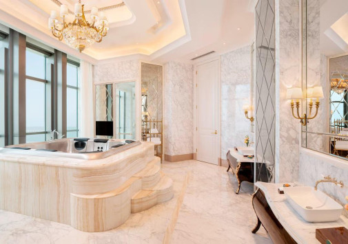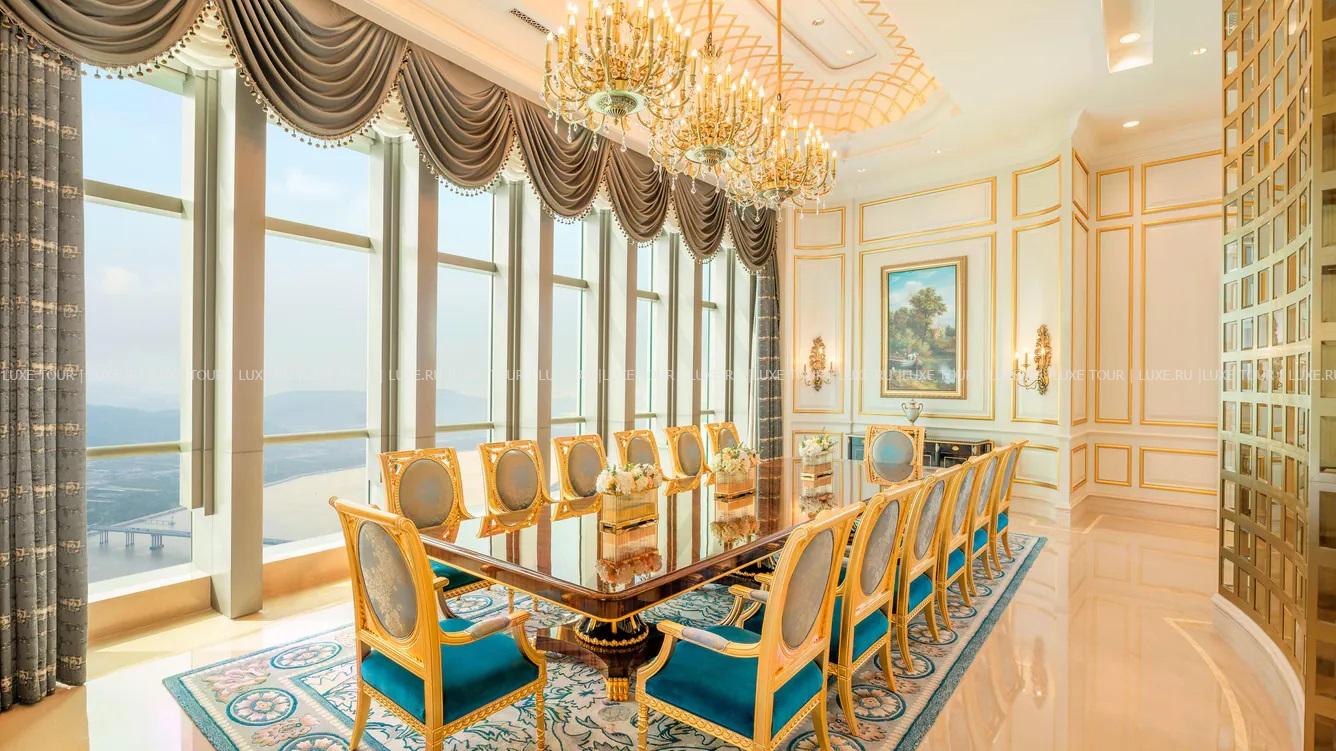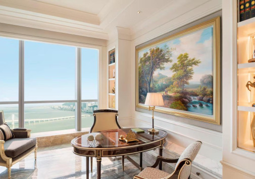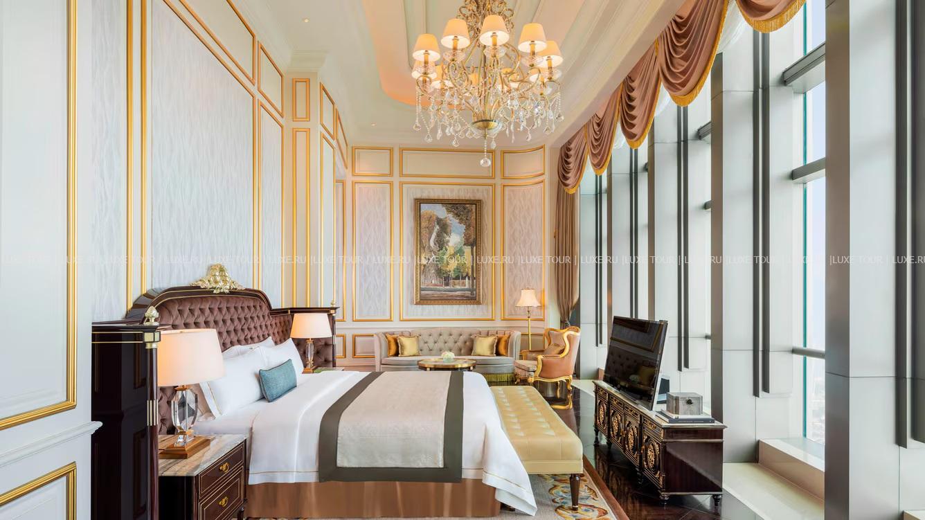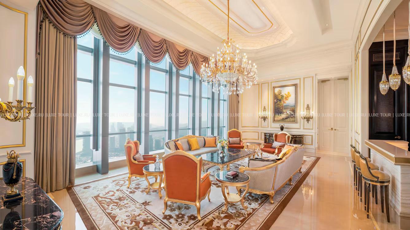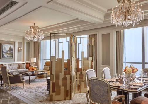 The St. Regis Zhuhai занимает 31 верхний этаж Чжухайской башни – сверхвысокого небоскреба, взмывающего над городом на 72 этажа и 329 метров. Головокружительным видом на Чжухай, Макао, дельту Жемчужной реки и Большой залив в отеле можно любоваться отовсюду – от роскошных номеров, гастрономических ресторанов и бара на крыше до бассейнов, первоклассного центра Iridium Spa и конференц-центра площадью более 1500 м2. The St. Regis Zhuhai – фешенебельный отель, «парящий» над «Китайской Ривьерой».