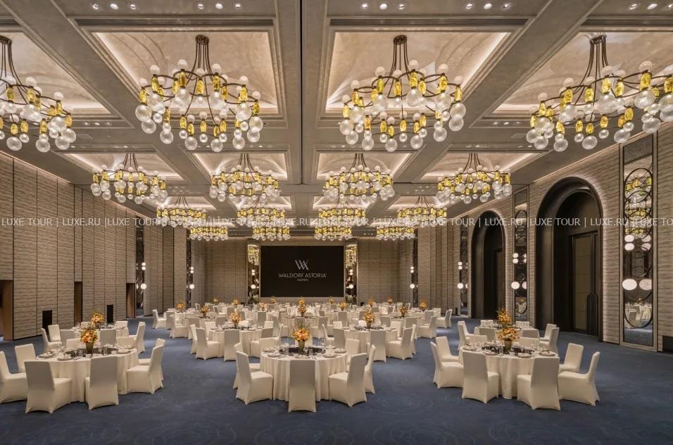 Для гостей – 10 залов для деловых и торжественных мероприятий общей площадью более 1400 м2, включая зал Waldorf Astoria площадью 956 м2 и вместимостью до 700 человек, бизнес-центр, Wi-Fi, панорамная терраса с садом, библиотека, парковка, аренда машин, лимузин-сервис, услуги консьержа, услуги прачечной.