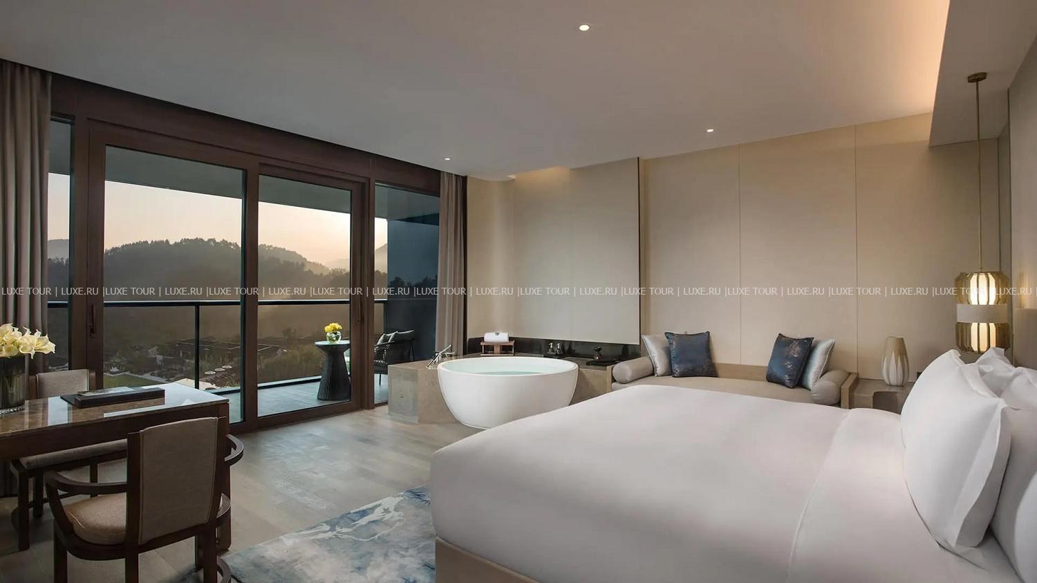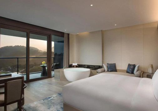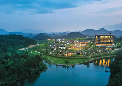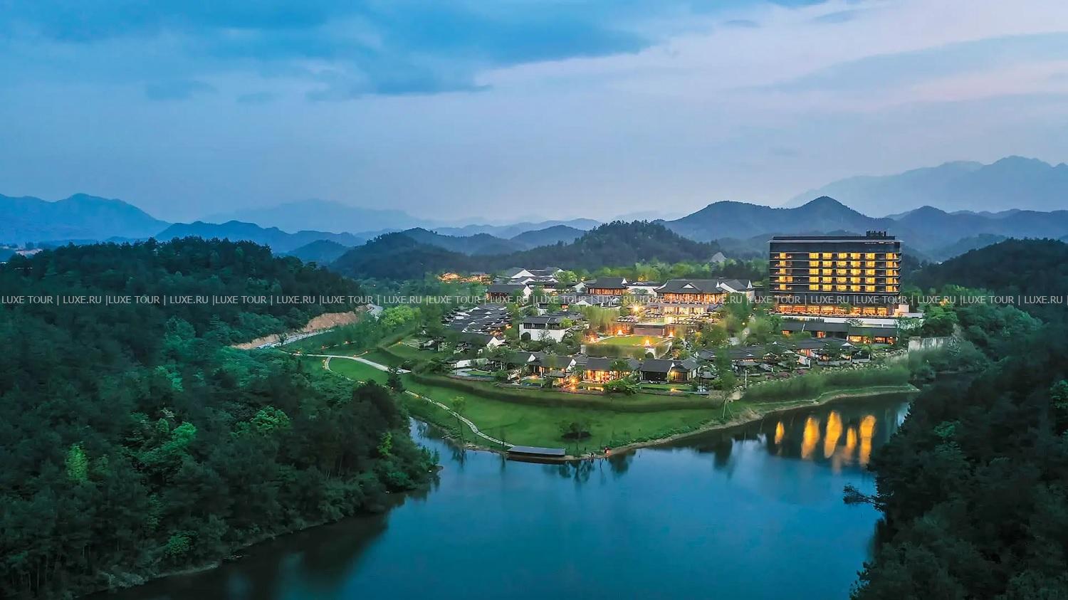 Banyan Tree Anji расположен в уезде Аньцзи – красивейшем уголке, известном своими бамбуковыми лесами, плантациями белого чая, прозрачными озерами и реками, и живописными горами, покрытыми нефритовой зеленью. Гости курортного отеля могут любоваться чарующими пейзажами и наслаждаться кристально чистым воздухом, отдыхая на балконах стильных номеров или на террасах шикарных вилл, изысканных ресторанов и бара на крыше, плавая в панорамном бассейне, занимаясь в фитнес-клубе и расслабляясь в Spa-центре. Banyan Tree Anji предлагает незабываемый отдых среди идиллической природы китайского «бамбукового городка».