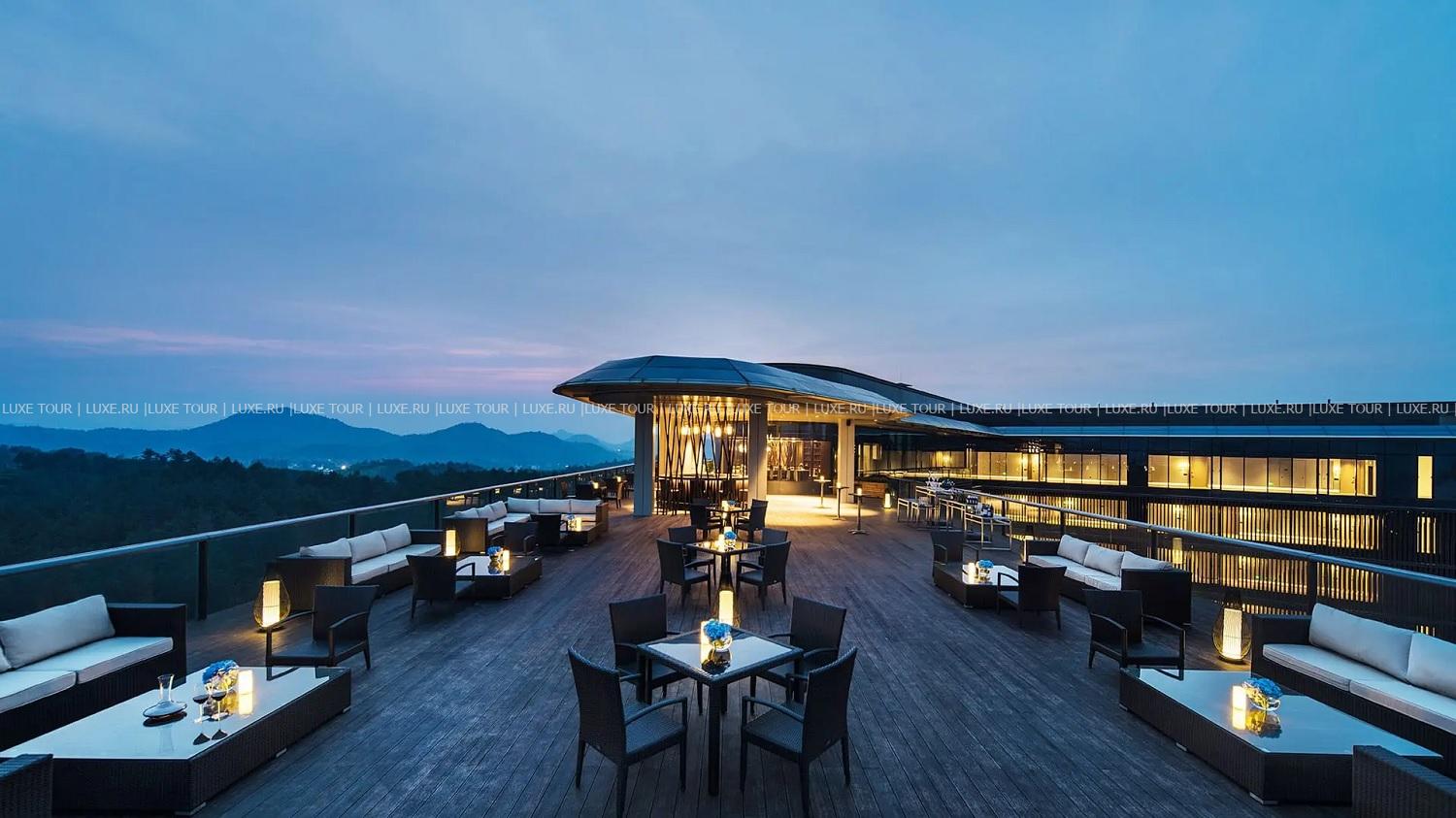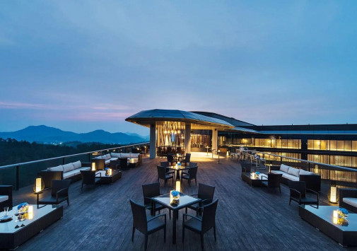 - Стильный бар Latitude, расположенный на террасе на крыше, откуда открывается потрясающий панорамный вид на горные пейзажи Аньцзи, предлагает легкие закуски, десерты, большой выбор чая и коктейлей.