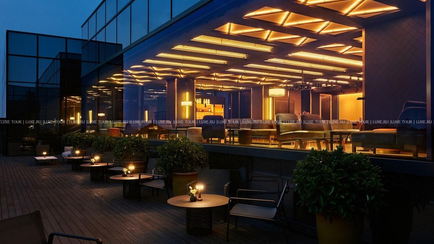 • Элегантный ресторан Rive Gauche. рекомендованный гидом Мишлен, представляет изыски современной французской кухни. Ресторан также располагает стильным коктейль-баром и живописной террасой с видом на гору Цзиншань и Национальный художественный музей Китая.
