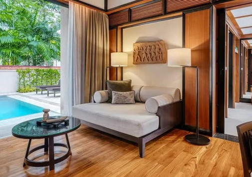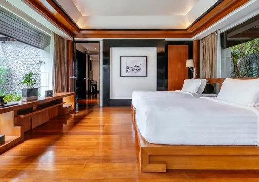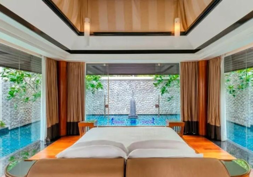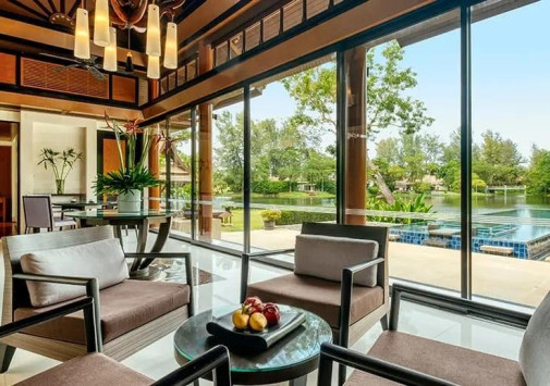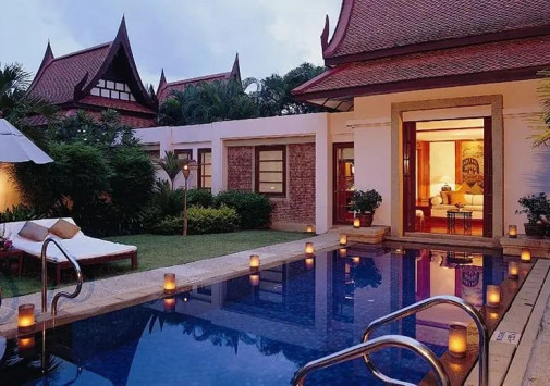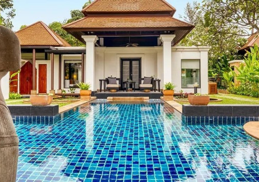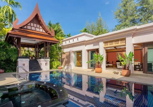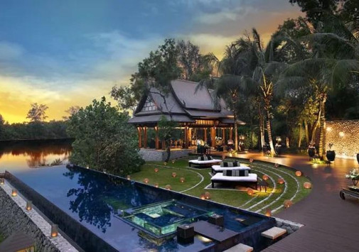 На берегу лазурного залива Bang Tao Bay, у просторных белоснежных пляжей, среди густой зелени садов и раскидистых кокосовых пальм, расположились комфортабельные виллы Banyan Tree Phuket. В просторных номерах – элегантные интерьеры в современном тайском стиле, с отделкой из натурального дерева и тканей, удобной мебелью и изысканными украшениями, с уютных террас, окруженных пышной зеленью, открывается изумительный вид на сверкающую гладь лагуны и тропические сады. Оздоровительный спа-центр — настоящий оазис красоты, релаксации и здоровья, предлагающий широкий выбор спа процедур. Также здесь открыта студия йоги, фитнес-центр, предлагаются морские круизы, развлекательные программы. В ресторанах подаются деликатесы и традиционные блюда тайской кухни, а также изыски средиземноморской кухни, блюда, приготовленные из свежайших морепродуктов. А в барах предлагаются разнообразные напитки, коктейли из тропических фруктов и легкие закуски. К услугам гостей — конференц-залы, бизнес-центр, автомобильная парковка, аренда автомобилей. Banyan Tree Phuket сочетает элегантный комфорт, богатую инфраструктуру и прекрасное расположение на живописном побережье острова Пхукет.