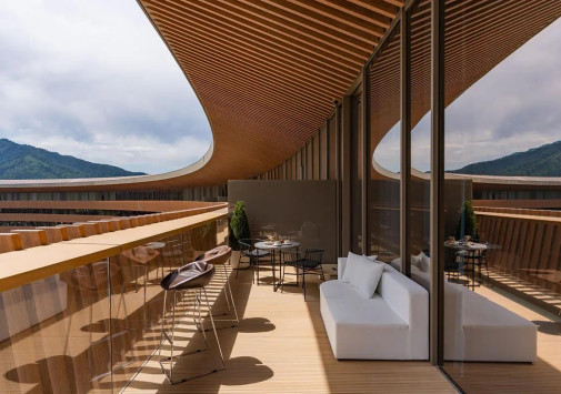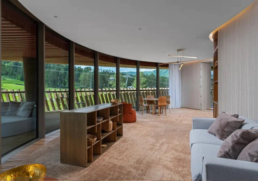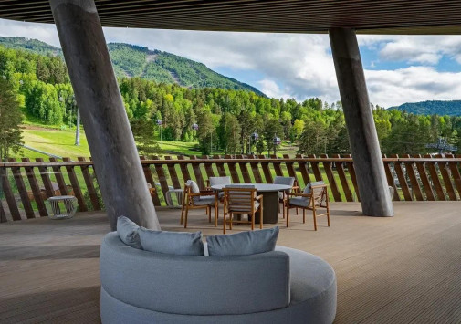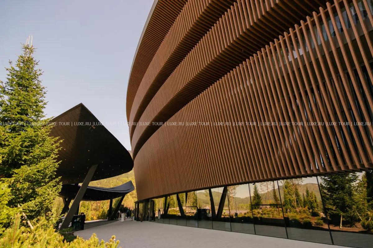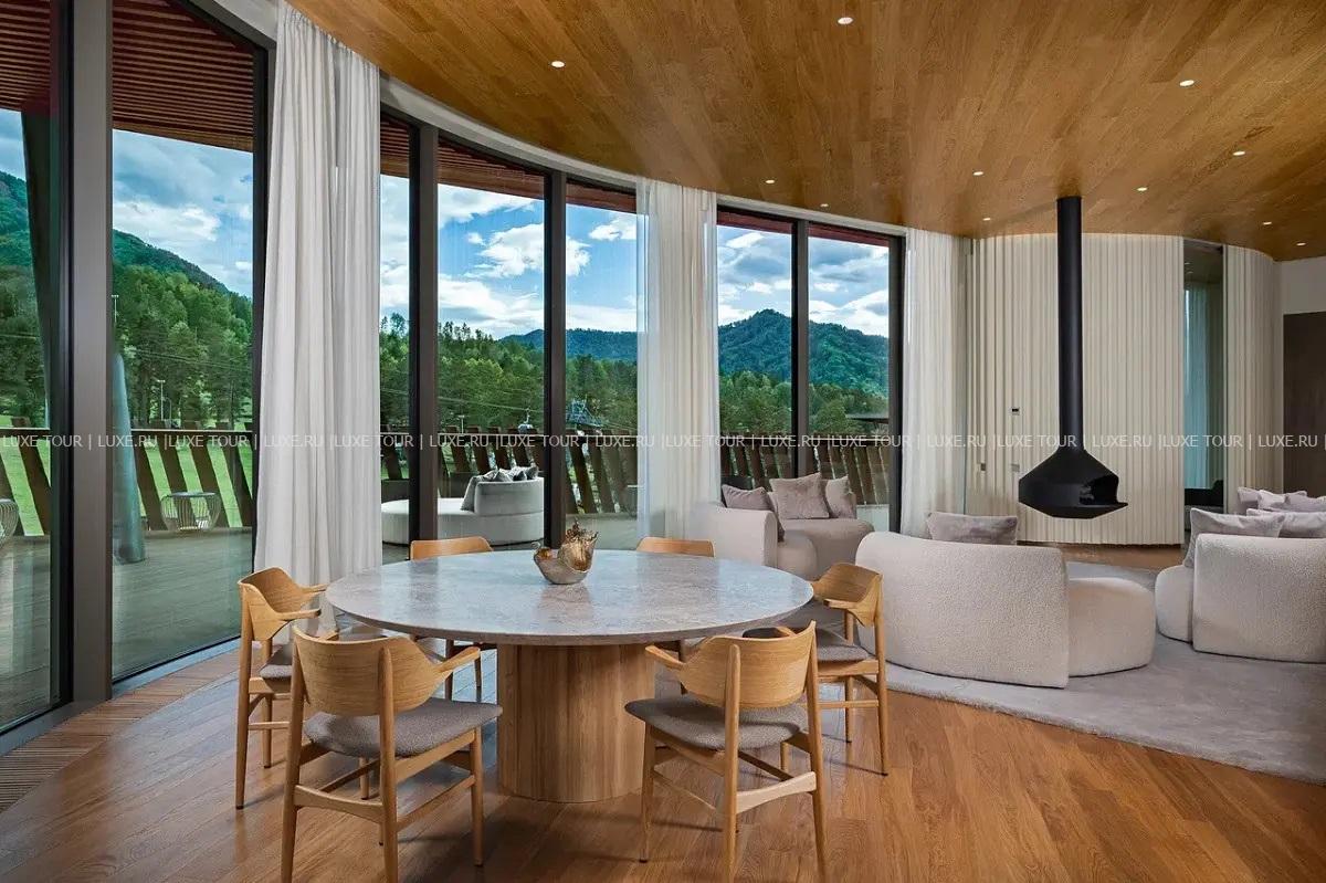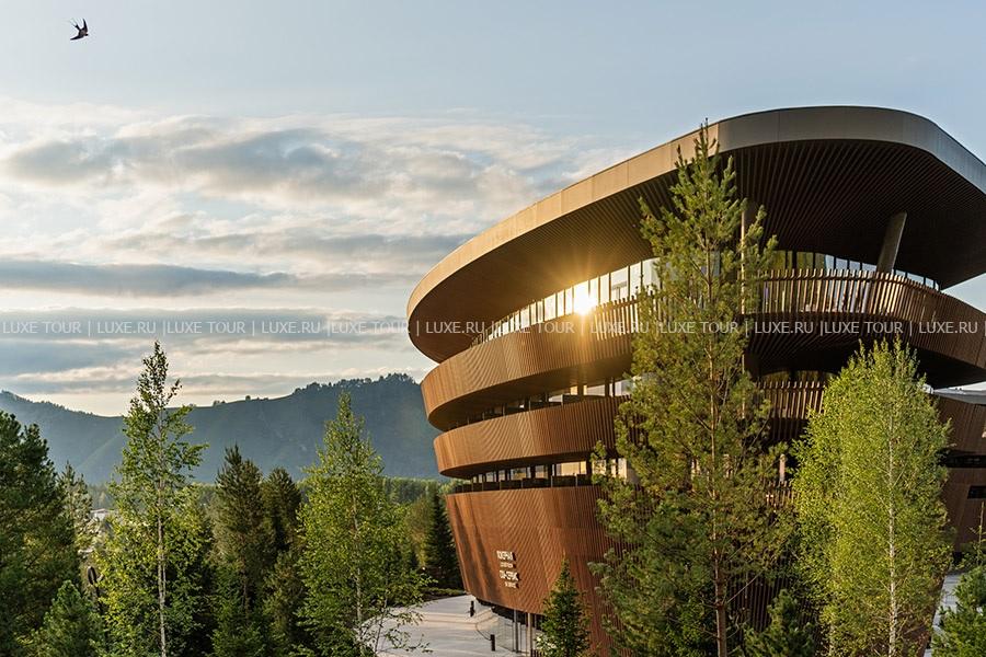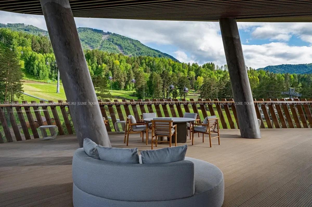 - Ресторан «Панорама 1020» с панорамными, во всю стену окнами и открытой круговой террасой предлагает сочетание европейской и традиционной алтайской кухни, и восхищает захватывающим 360-градусным видом на горные хребты и речную долину
