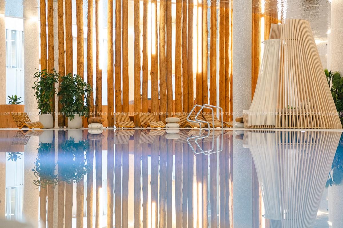 В Spa-комплексе имеются 5 крытых бассейнов с подогревом, включая 25-метровый плавательный бассейн, релакс-бассейн с гидромассажем, бассейн с водой, насыщенной магниевой солью, кислородный бассейн и детский бассейн.