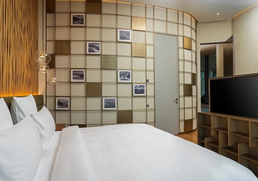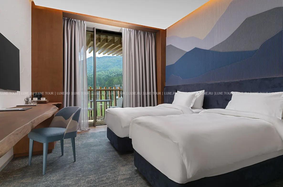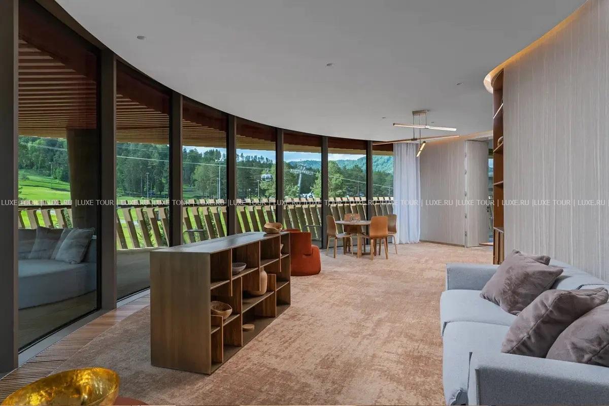 Для гостей – залы для деловых и торжественных мероприятий, включая многофункциональный зал «Арнебия» вместимостью до 440 человек, конференц-зал «Ирбис» на 30 мест, и 7 переговорных комнат вместимостью от 6 до 24 человек, кинозал «Эдельвейс» на 38 мест, бизнес-центр, Wi-Fi, фирменный магазин, ски-сервис, парковка, аренда автомобилей, услуги консьержа, услуги прачечной.