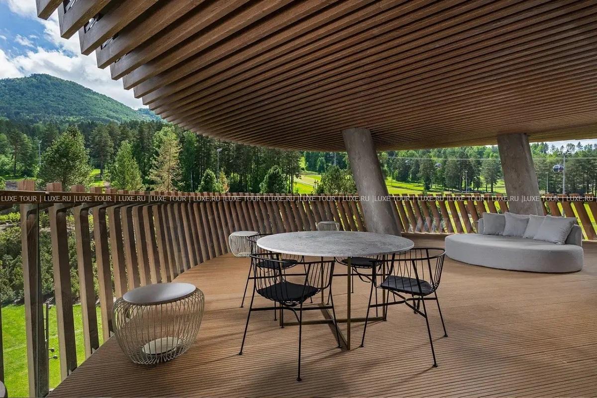 - Гастрономический ресторан «Тенгри» с открытой панорамной террасой представляет сезонные деликатесы региональной кухни, приготовленные из местных фермерских продуктов.