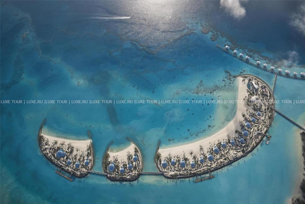 В отеле 73 виллы различных категорий, включая 38 Overwater Villas и 35 Beach Villas. Шикарные виллы впечатляют авангардным дизайном и сюрреалистичной архитектурой, вдохновленной окружающей природой – надводные виллы в виде капсул с облицовкой из нержавеющей стали напоминают водные пузырьки, поднимающиеся над лагуной, а пляжные виллы – изгибы песчаных дюн. В каждом номере: One Bedroom Overwater Villa: