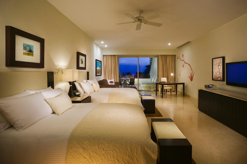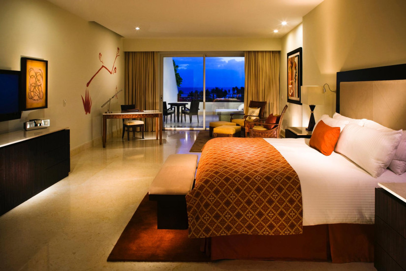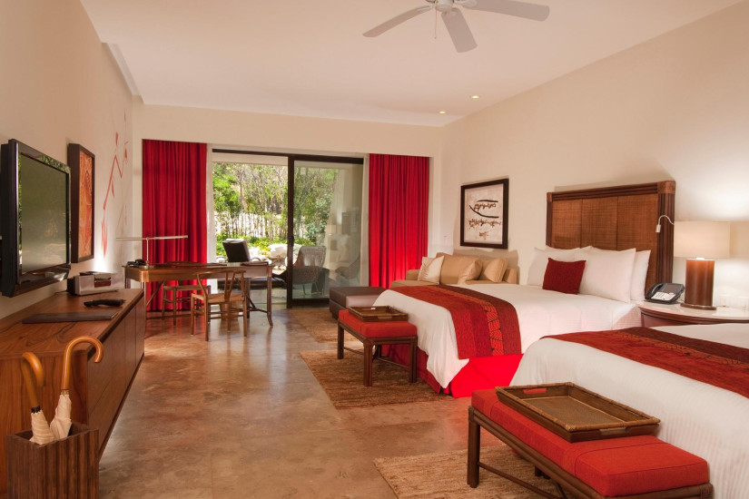- 110 м2. Состоит из спальни с кроватью king-size или двумя кроватями queen-size, зоны отдыха и рабочей зоны, ванной комнаты с гидромассажной ванной и отдельным душем, просторной террасы с панорамным видом на джунгли Ривьера Майя. Максимальное размещение - 3 взрослых + 2 ребенка (4-15 лет и 0-3 года).