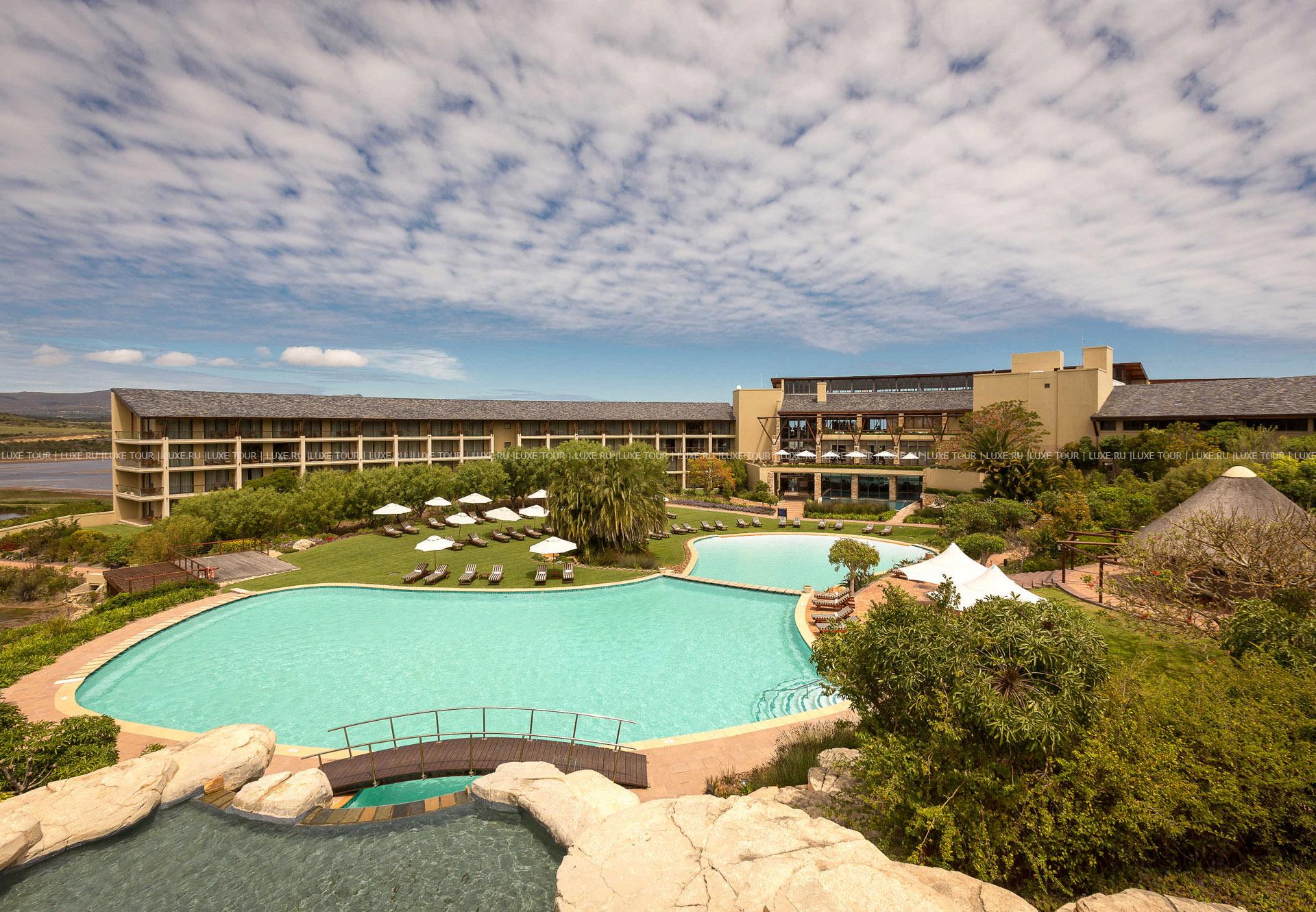 Отель расположен в 100 км от города, на берегу живописной лагуны Bot River Lagoon, рядом с заповедником Kogelberg Nature Reserve, где обитают дикие лошади и более 100 видов птиц, в полутора часах езды от международного аэропорта Кейптауна. Уникальная лагуна образована рекой Bot. Здание отеля построено в современном стиле, напоминающем большую полукруглую башню стилизованного дворца, стоящего на вершине холма. Оно удачно вписывается и гармонирует с естественной окружающей средой. Отсюда открывается уникальный вид на заповедник и долину. В отеле работает SPA-центр, есть бассейны, открыты рестораны и предлагаются специальные программы для детей.