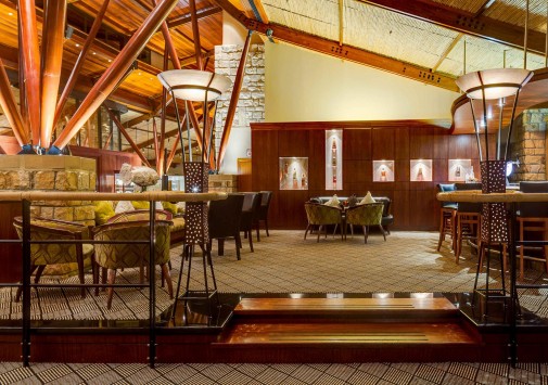 - На террасе у камина, рядом с библиотекой, можно провести вечер в баре-салоне Laguna Lounge. Отсюда видна речная лагуна с обитающими там фламинго.
