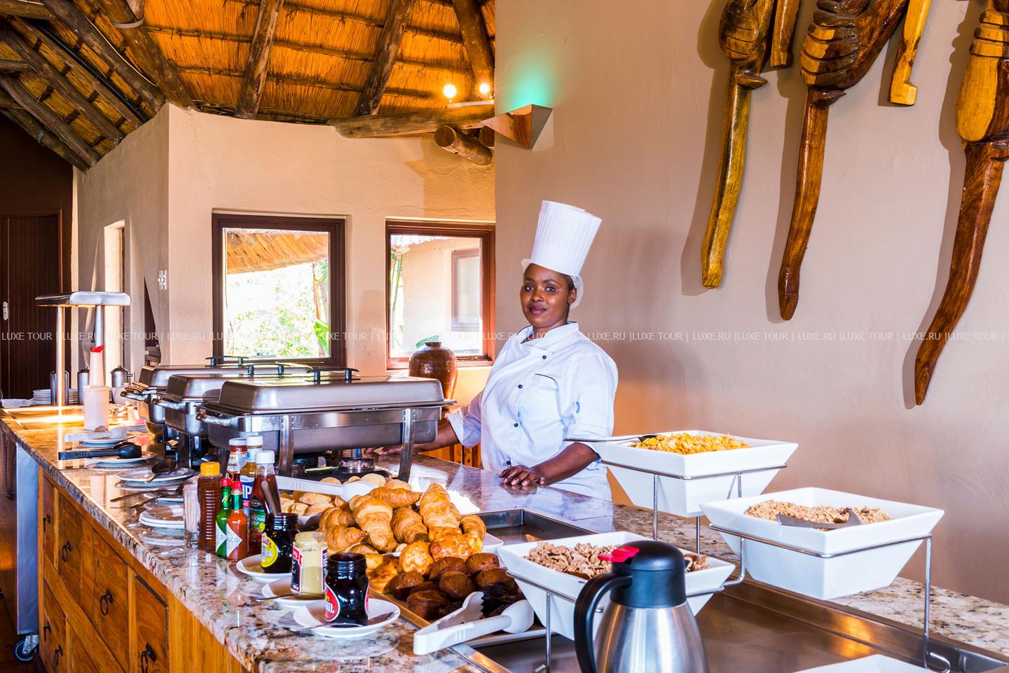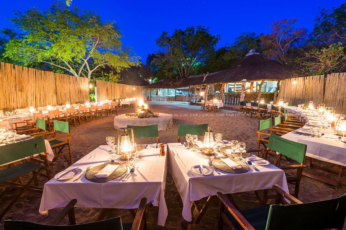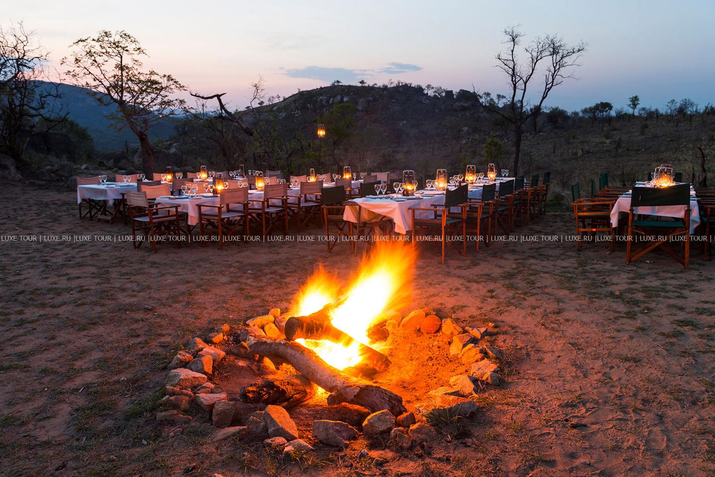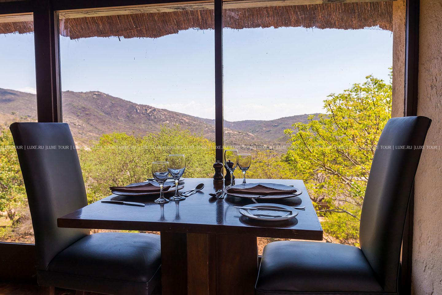 Ресторан, в котором готовят блюда европейской и местной южноафриканской кухни. Часть его расположена на террасе, откуда видны горные хребты Лебомбо и Малелане. Есть также открытый дворик «бома», оформленный в традиционном африканском стиле, предназначенный для готовки пищи на открытом огне. Здесь устраиваются вечерние ужины вокруг костра. Рядом с лобби работает бар-библиотека.