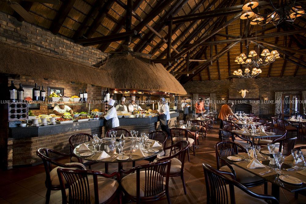 К услугам гостей ресторан, расположенный в основном здании рядом с лобби. Его зал оригинально отделан деревом, имеет высокие деревянные потолки, покрытые соломой, в центре находится большой открытый камин. Часть ресторана выходит на террасу с видом на внутреннее пространство территории отеля. В отдельном дворе построен типично африканский дворик «бома» с огромным кострищем посередине, он обложен крупными камнями, здесь на очаге готовятся экзотические блюда типично африканской кухни. Вечерами, при наступлении сумерек, устраиваются оригинальные этнографические ужины. Рядом с лобби отеля работает бар.