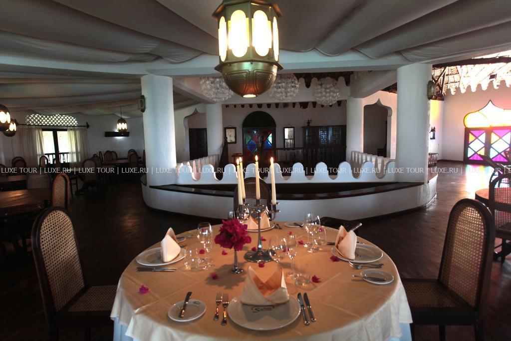 Ресторан в главном здании предлагает блюда континентальной кухни с местными специями и свежими дарами моря, есть столики на побережье с видом на океан.