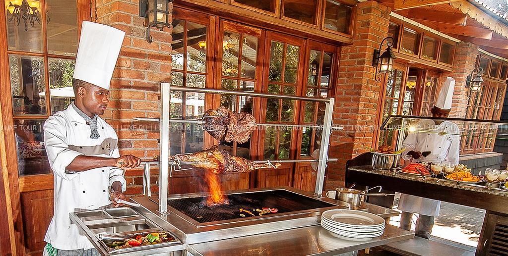 Ресторан Redds Africa Grill House, расположенный в центре лоджа. Здесь подают различные блюда из мяса, традиционного африканского приготовления.