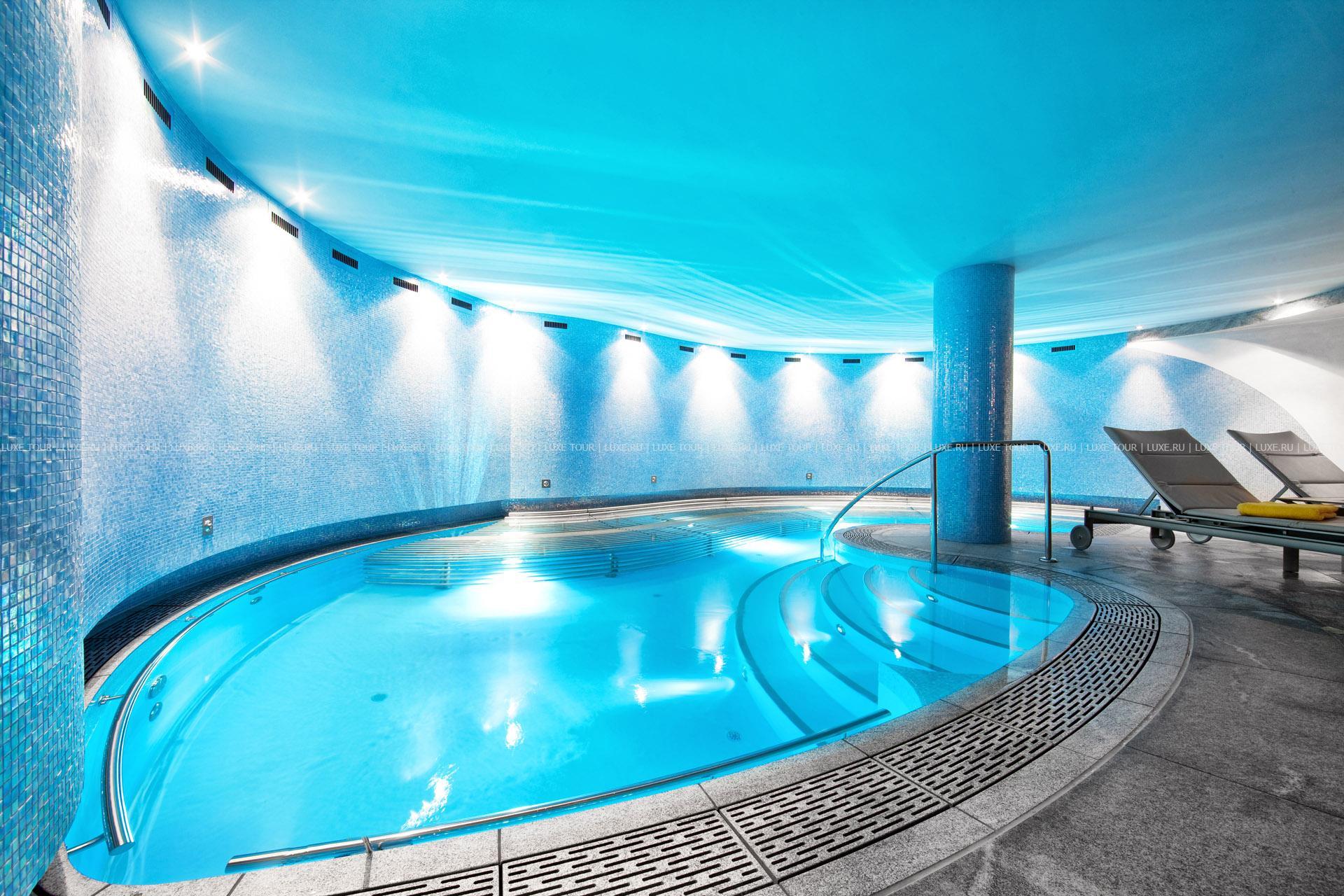 3 бассейна: большой открытый (26°C), крытый (30°C) и открыто-крытый бассейн с возможностью выплыть на живописную террасу (29°C).