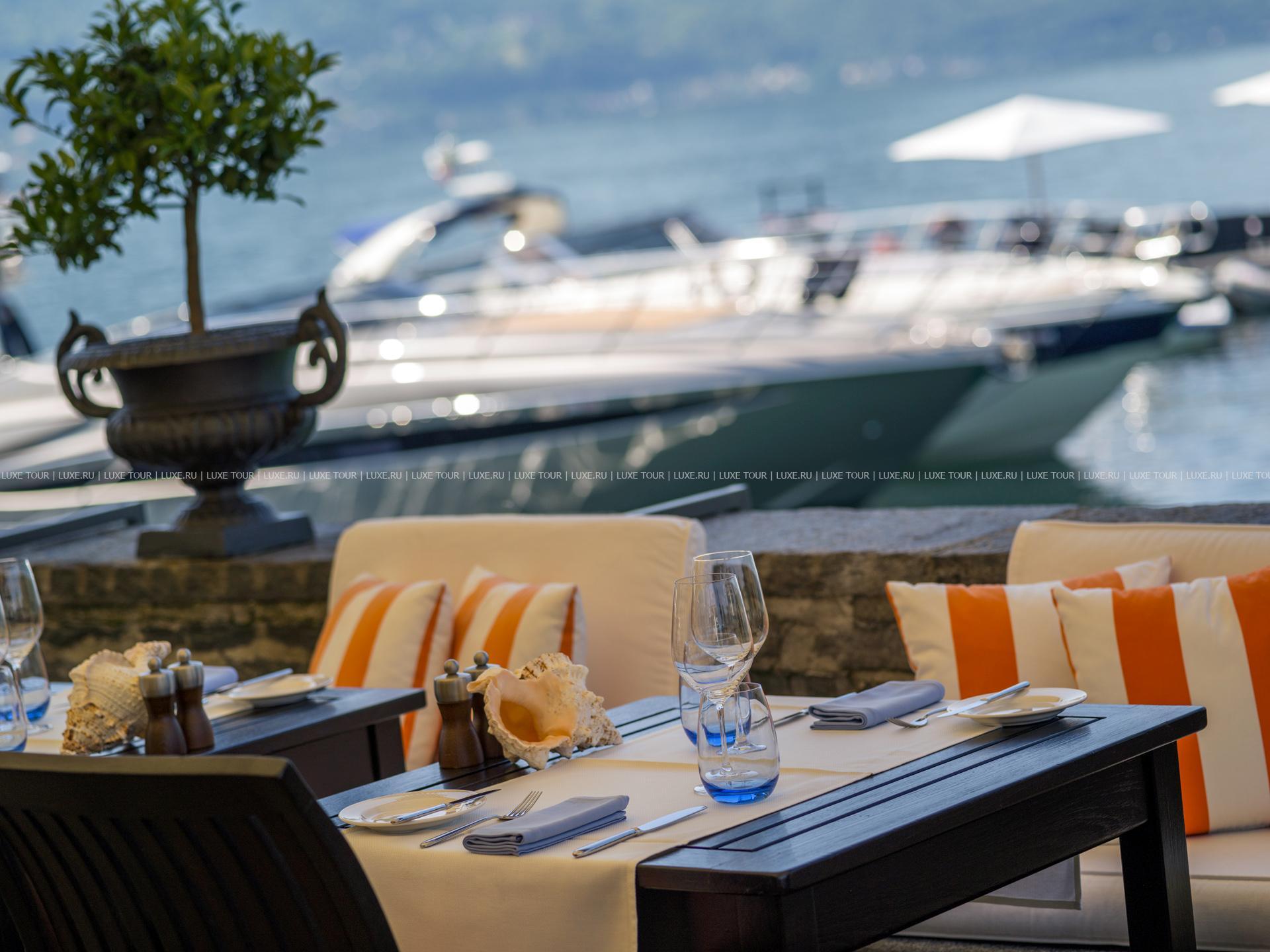 - В ресторане La Brezza, который открыт для ужинов и также награжден 17 баллами Gault&Millau, подают блюда средиземноморской кухни.